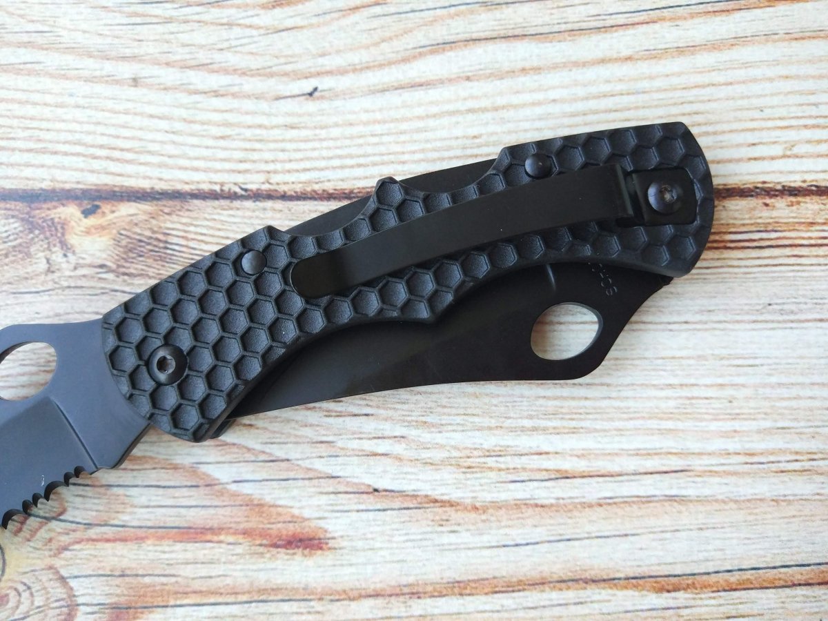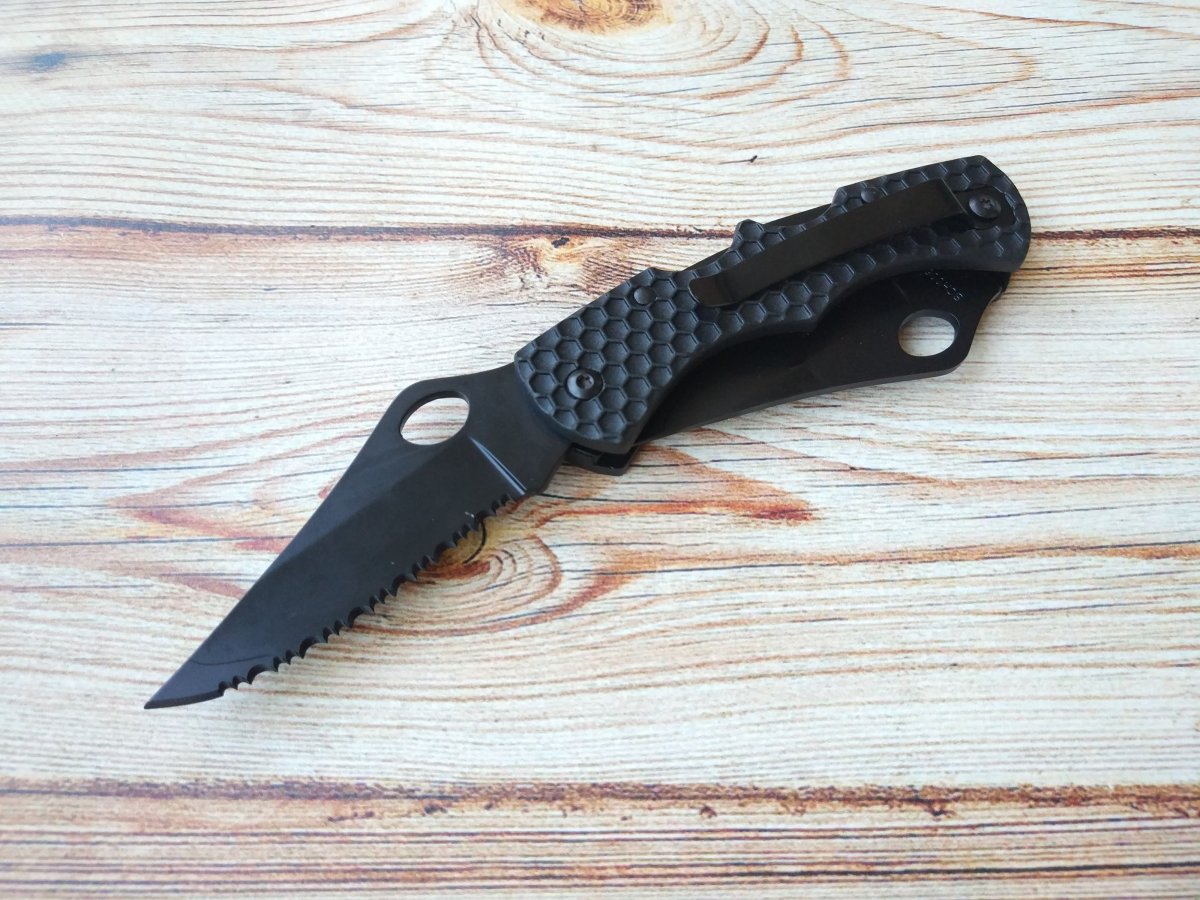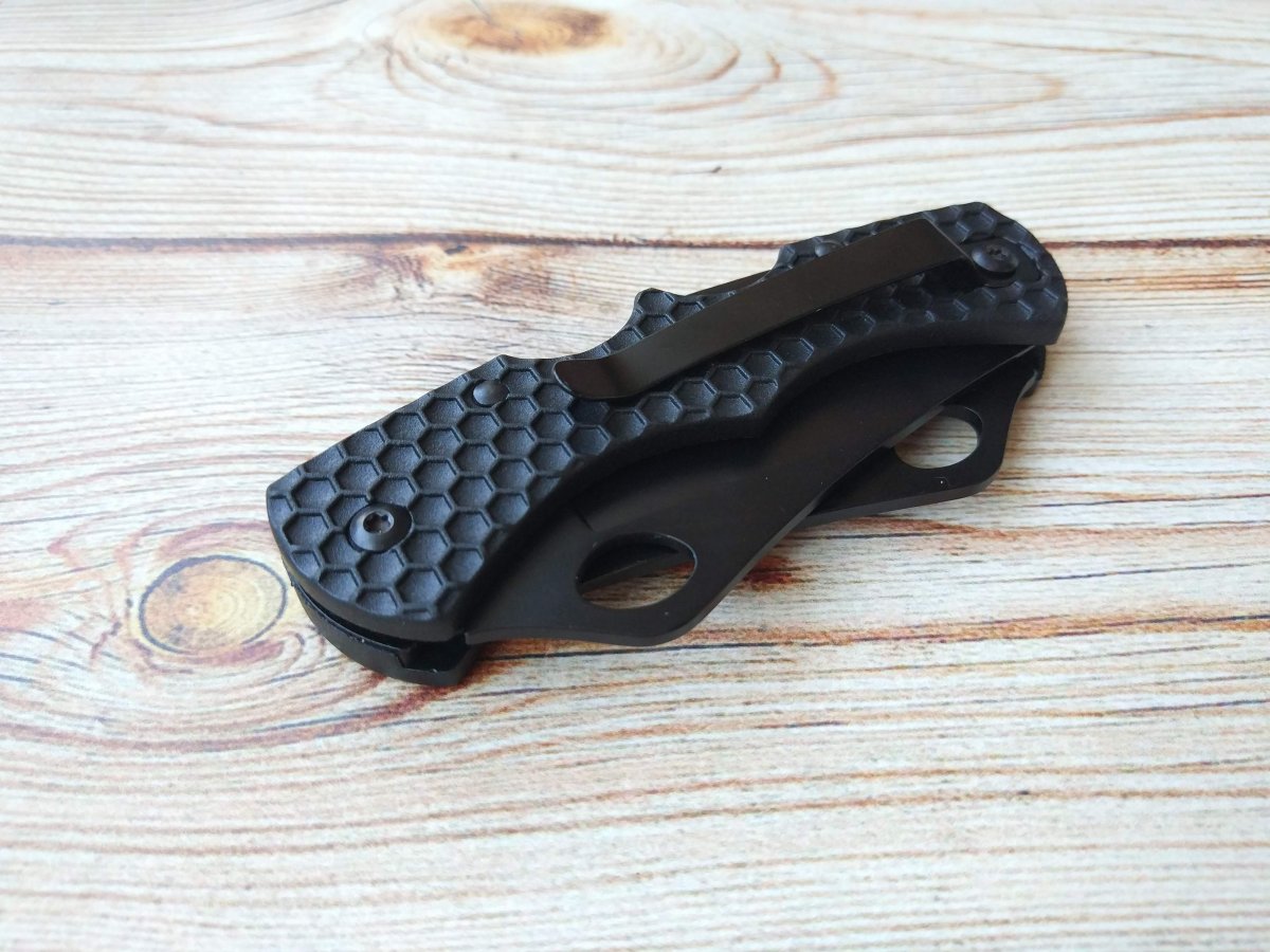 Форма клинка - вариация «на тему» Clip Point, изготовлен он из коррозионностойкой стали 8Cr13MoV и имеет черное финишное покрытие. Замок - Double Lockback, простой и надежный. Рукоять вполне удобна разными хватами (как в перчатке, так и без). Съемная клипса дополняет общую картину.