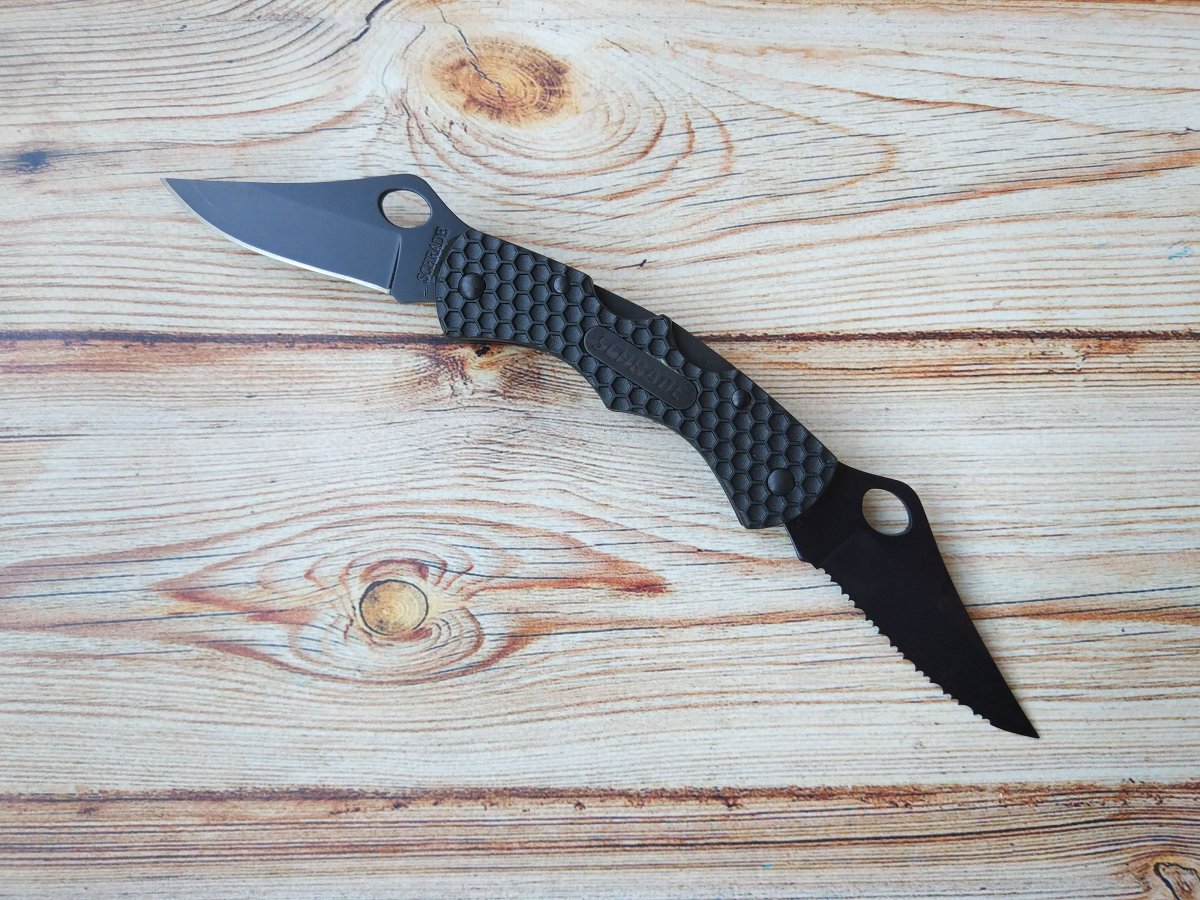 Это представитель так называемых EDC (Every Day Carry) ножей, компактных, легких и удобных для ежедневного использования. Основной изюминкой данной модели является наличие сразу двух клинков – один с плейновой заточкой, второй с серрейторной. Что добавляет ножу универсальности, ведь теперь можно будет выбрать именно тот вариант заточки, который больше подходит для требуемой работы.