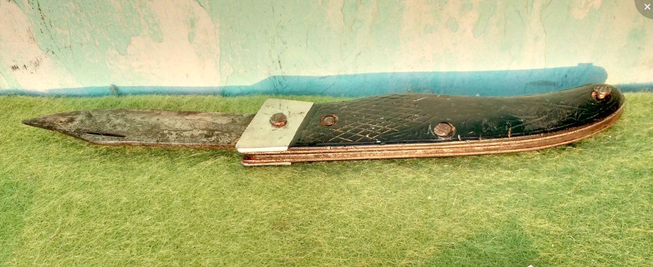 Один нож с эбонитовой ручкой ручной работы.