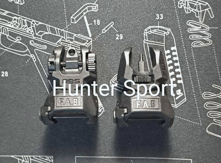 Складные механические, прицельные Мушка и Целик FBS / RBS Fab Defense Black, прямые. Оригинал.