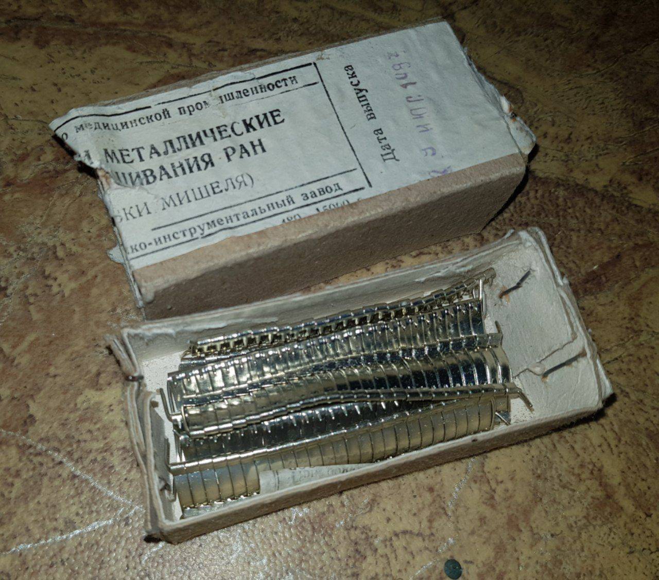 ціла упаковка радянських скобок, набір повний, пінцету нема.