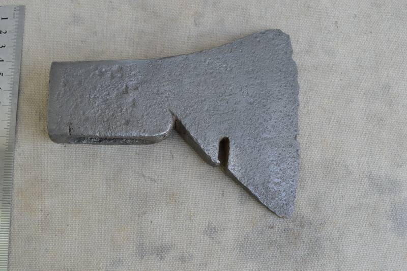 Сокира копана. Відкислочена, почищена. Вага 1,1 кг. На обусі присутня тріщина (див. фото). Клейма не виявлено.