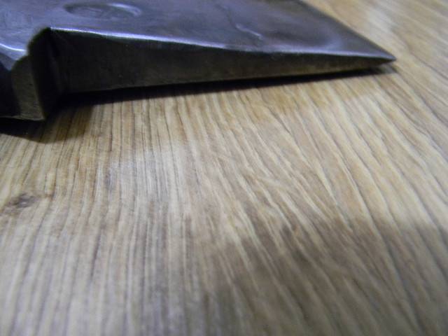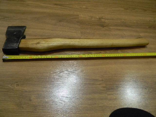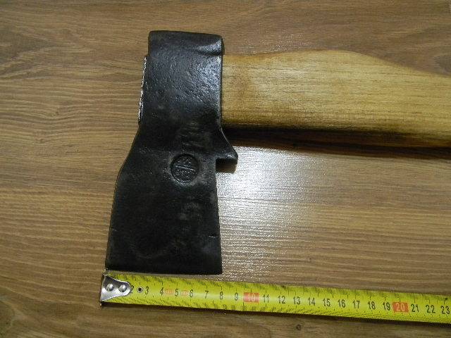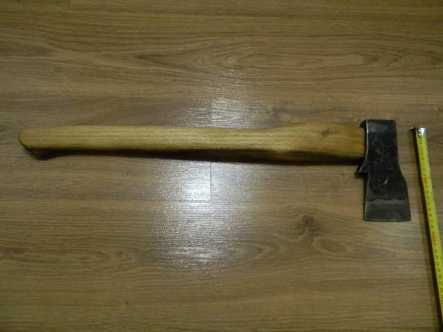 Попередньо голова латвійський тип,но була з втратами,пришлось надати таку форму.Раковини на лезі думаю що заводський брак,тому що на свіжих зрізах сліди наварки не проглядуються.Топорище з акації.