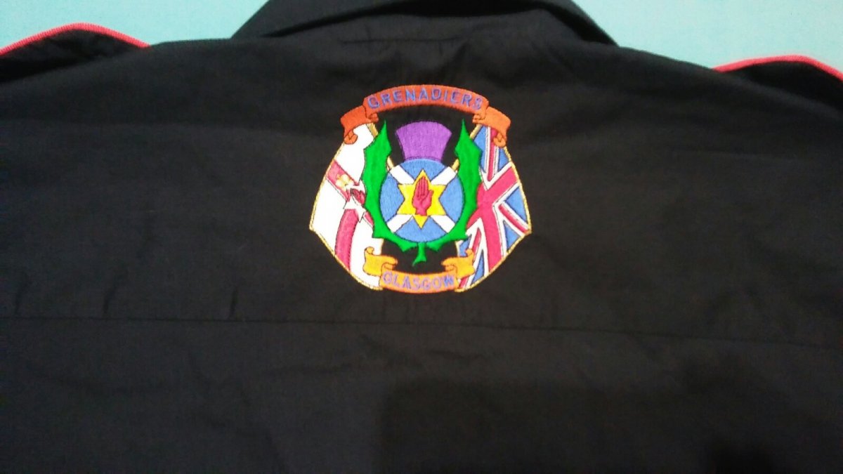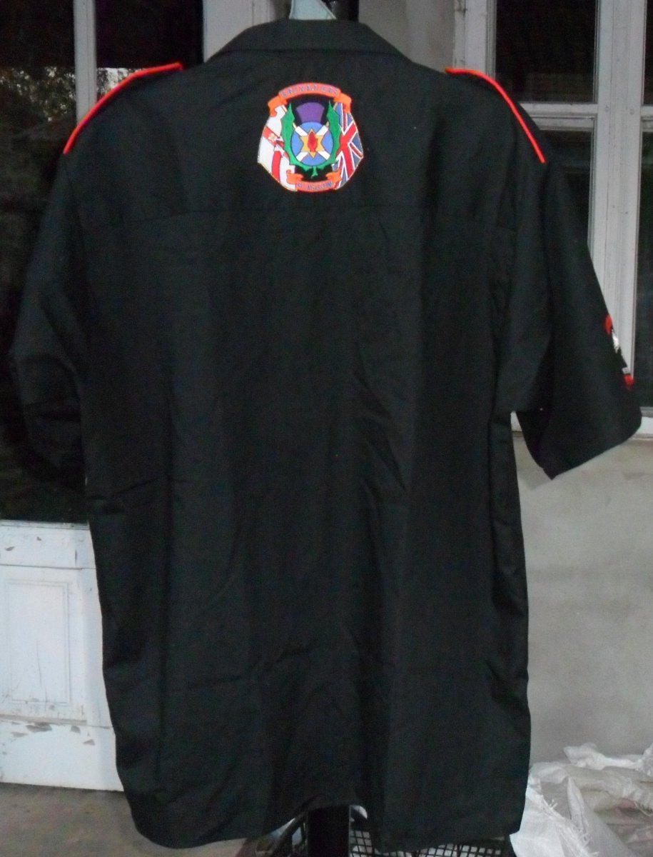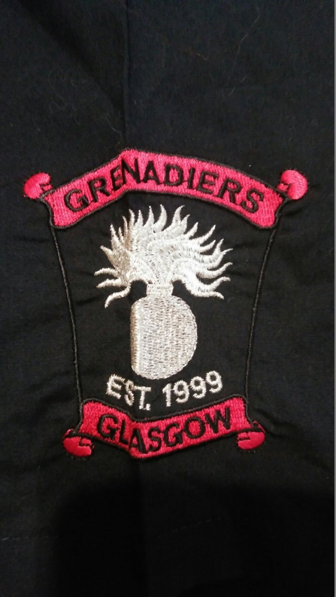 Сорочка чорна на короткий рукав з вишитими емблемами Grenadiers Glasgow (Grenadiers Memorial Flute Band Glasgow),
