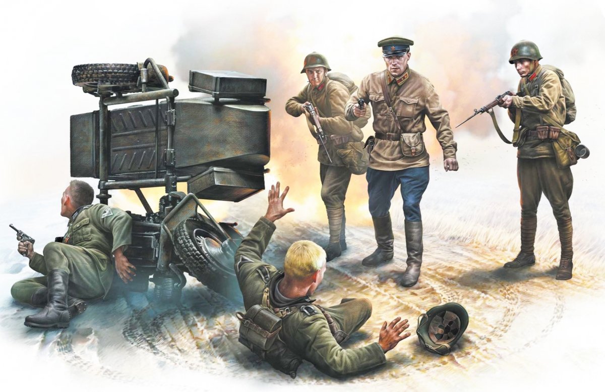 Советские солдаты из засады подбили немецких мотоциклистов.