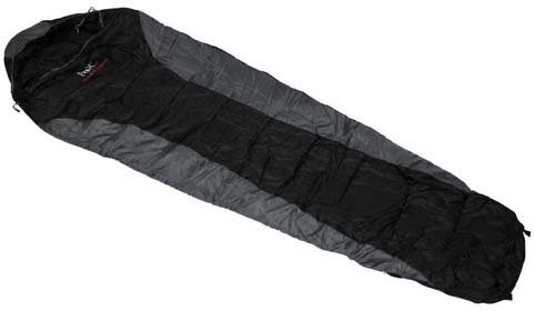 Спальный мешок рассчитан на температуру комфорта до -4C. Дно покрыто анти-скользящим покрытием. Цвет: черно-серый; Материал: полиэстер; Наполнитель: HollowFiber 250 г/м2