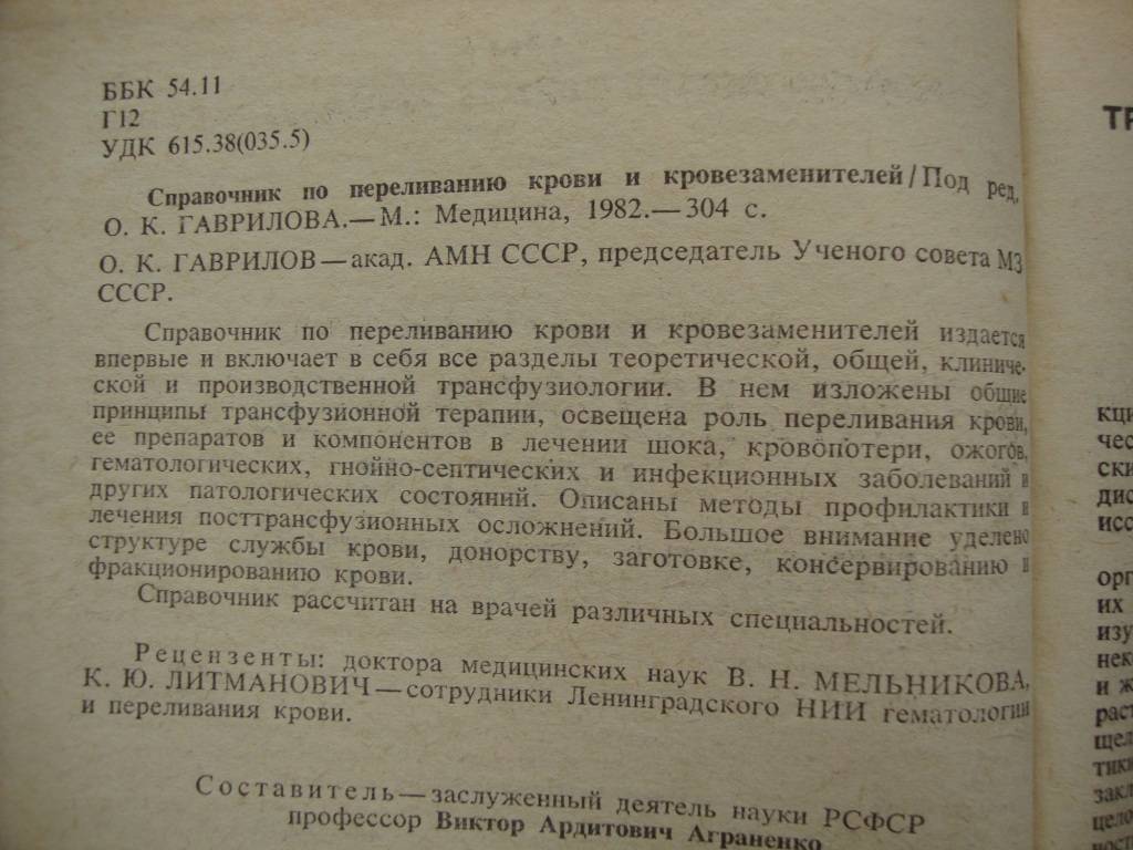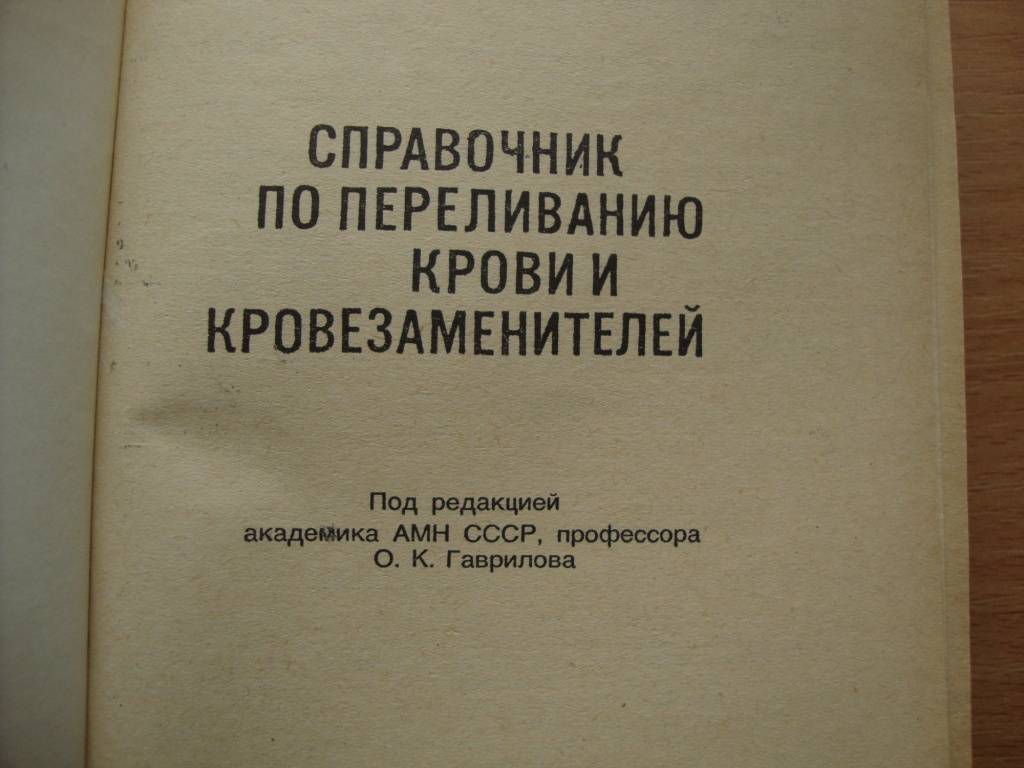 Справочник по переливанию крови и кровезаменителей