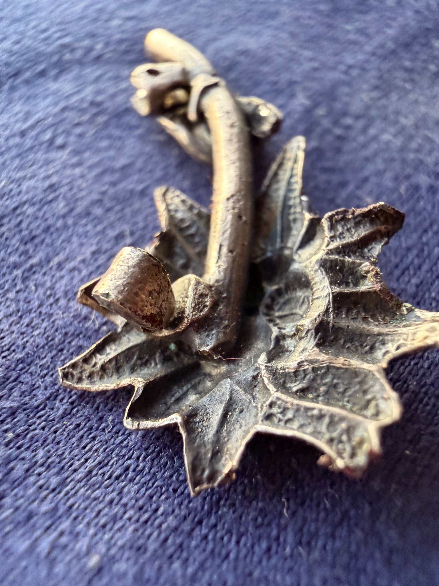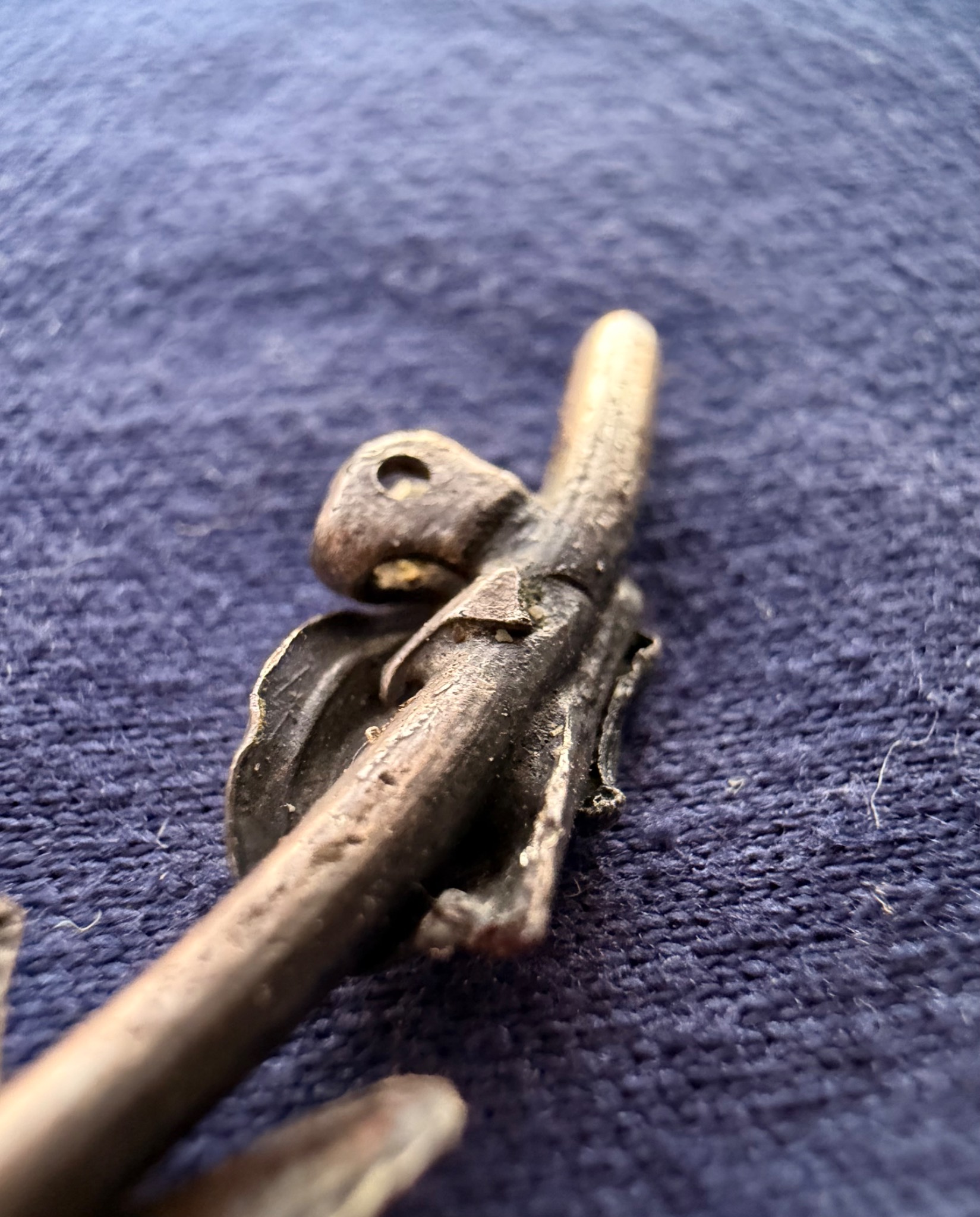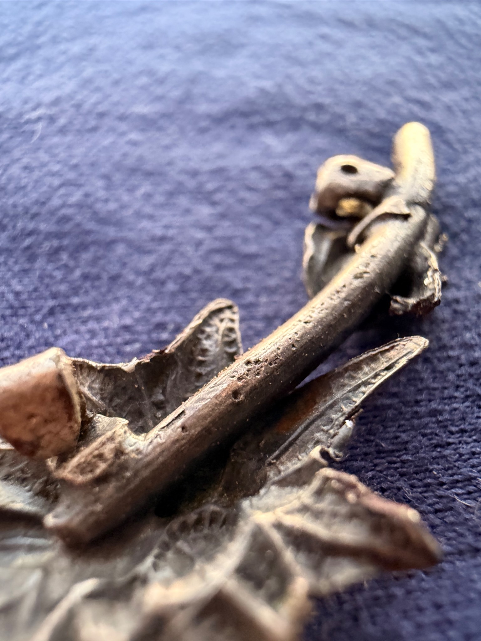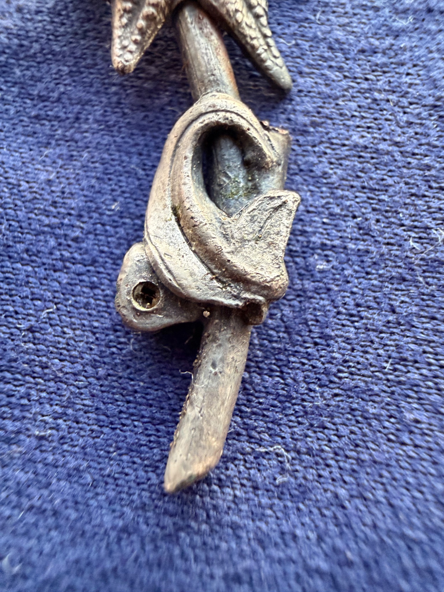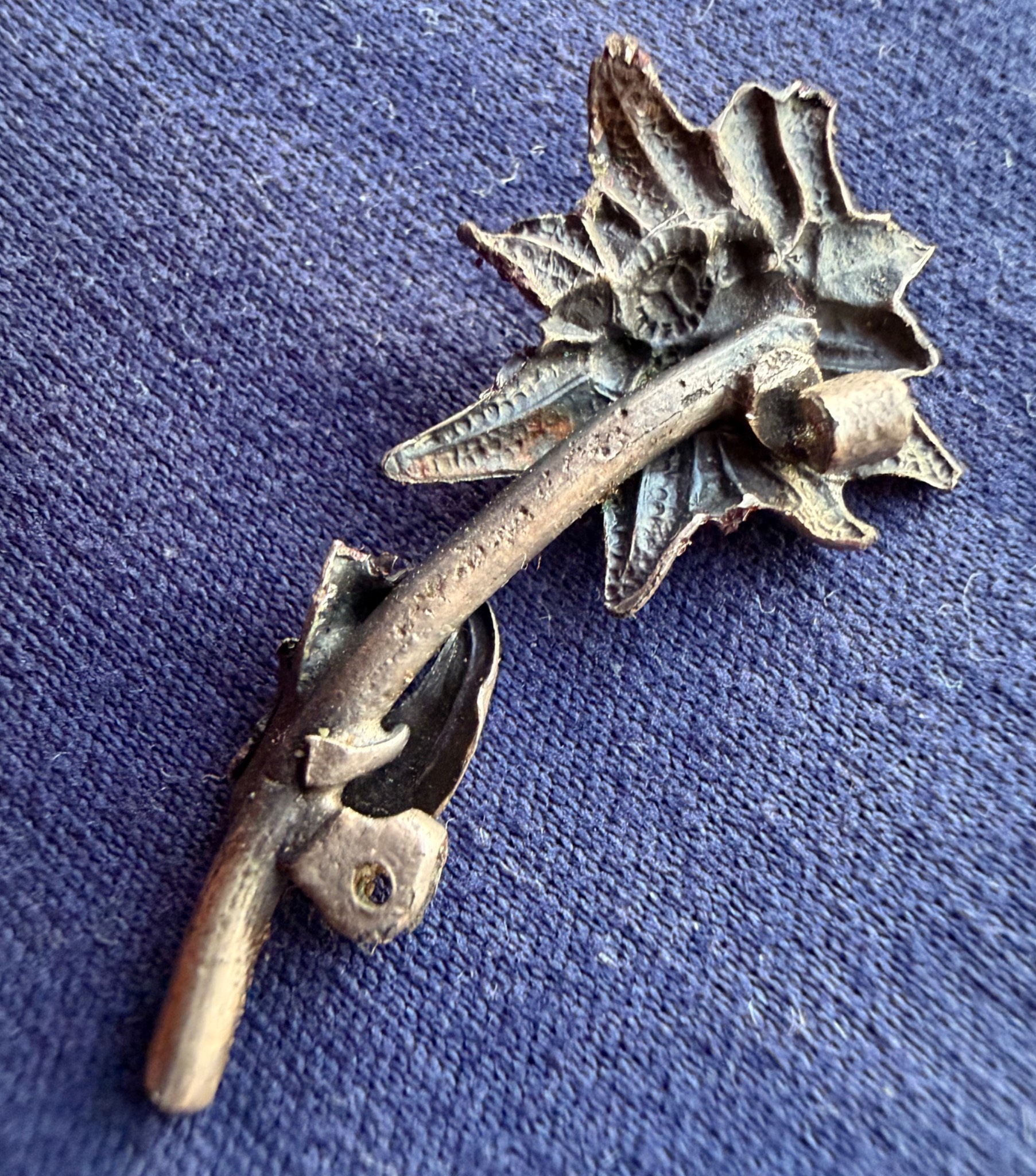 Квітка виконана зі срібла та має з внутрішньої сторони відповідні кріплення за зачіп під голку, тож ймовірно Едельвейс кріпився на одежу або ж Кепі.