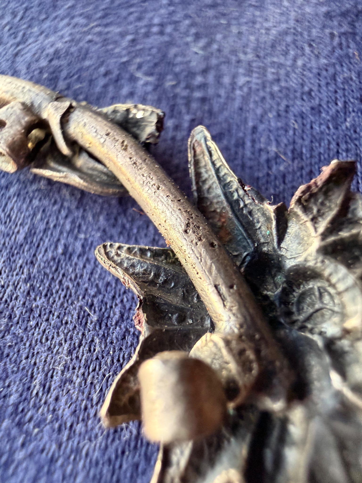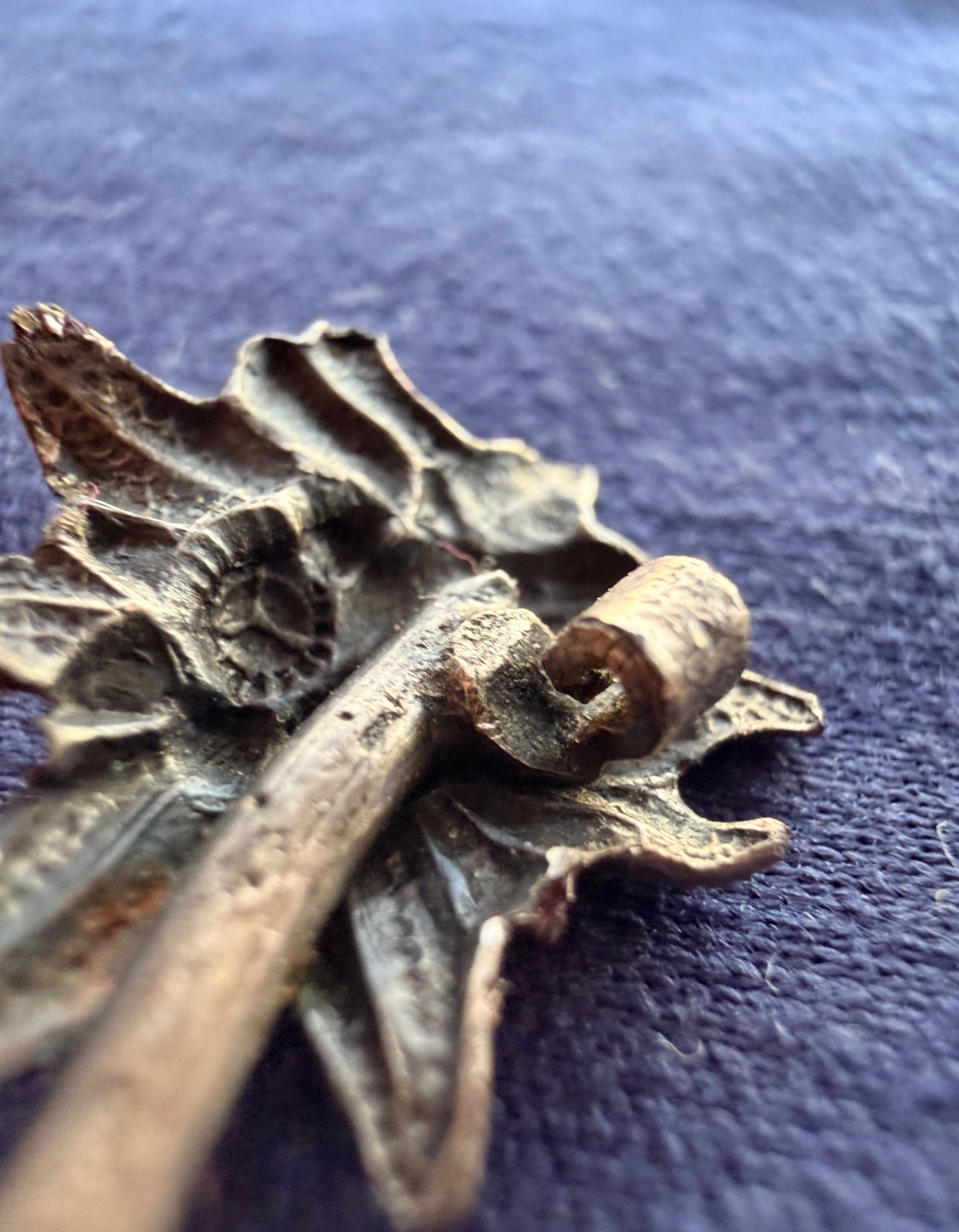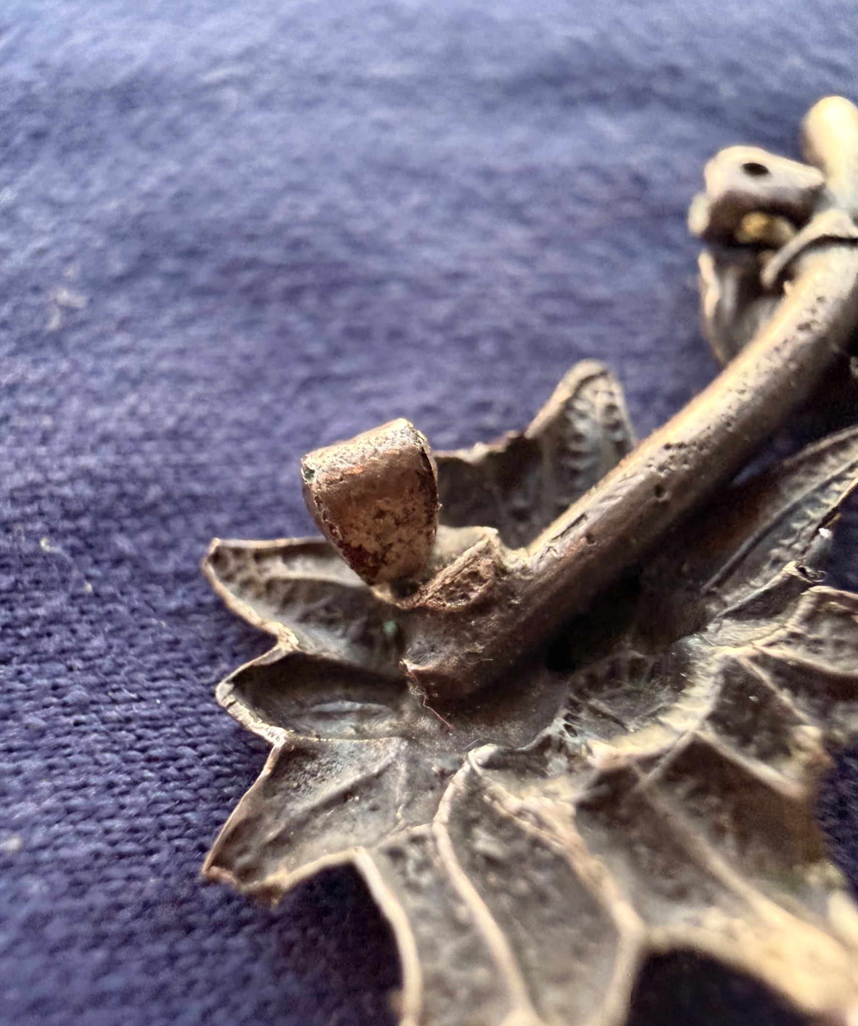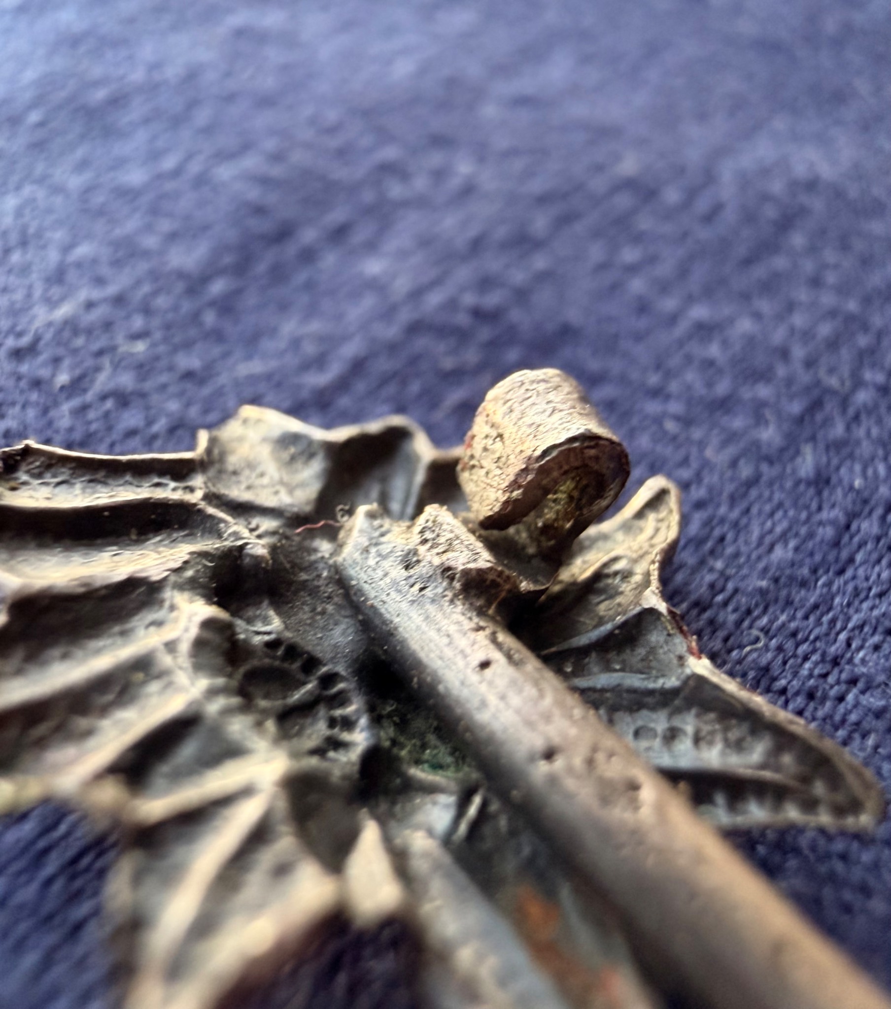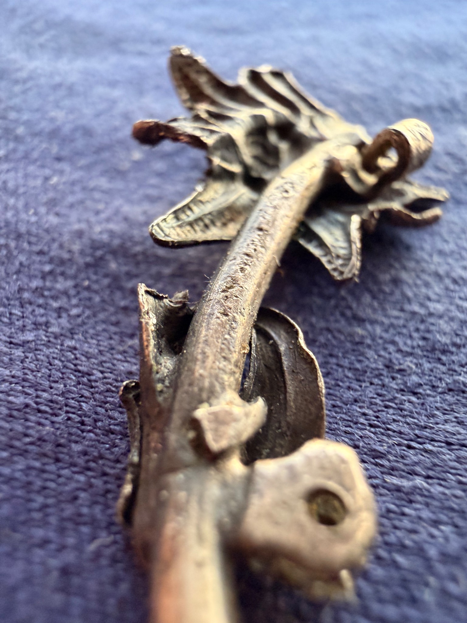 Квітка виконана зі срібла та має з внутрішньої сторони відповідні кріплення за зачіп під голку, тож ймовірно Едельвейс кріпився на одежу або ж Кепі.