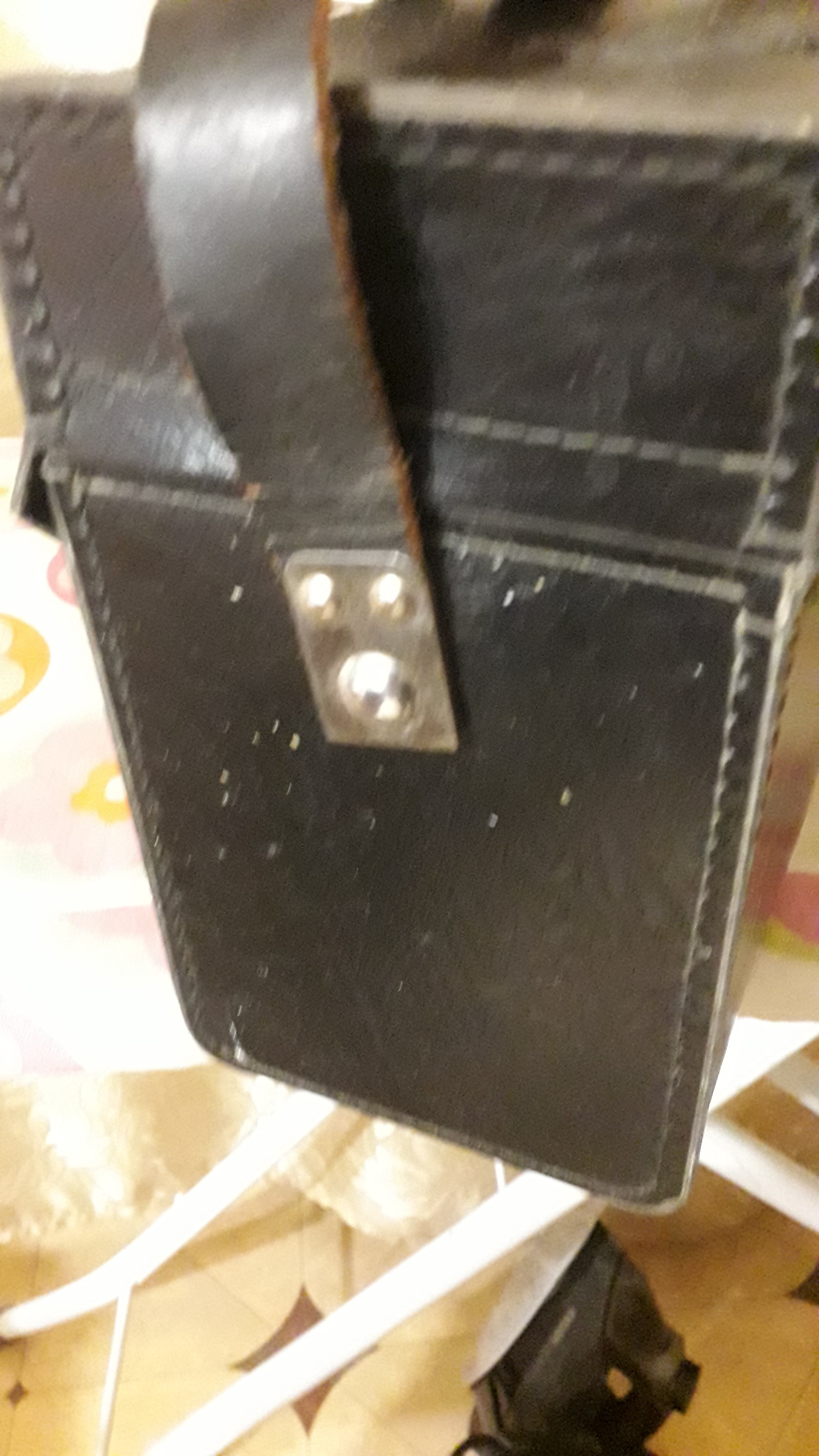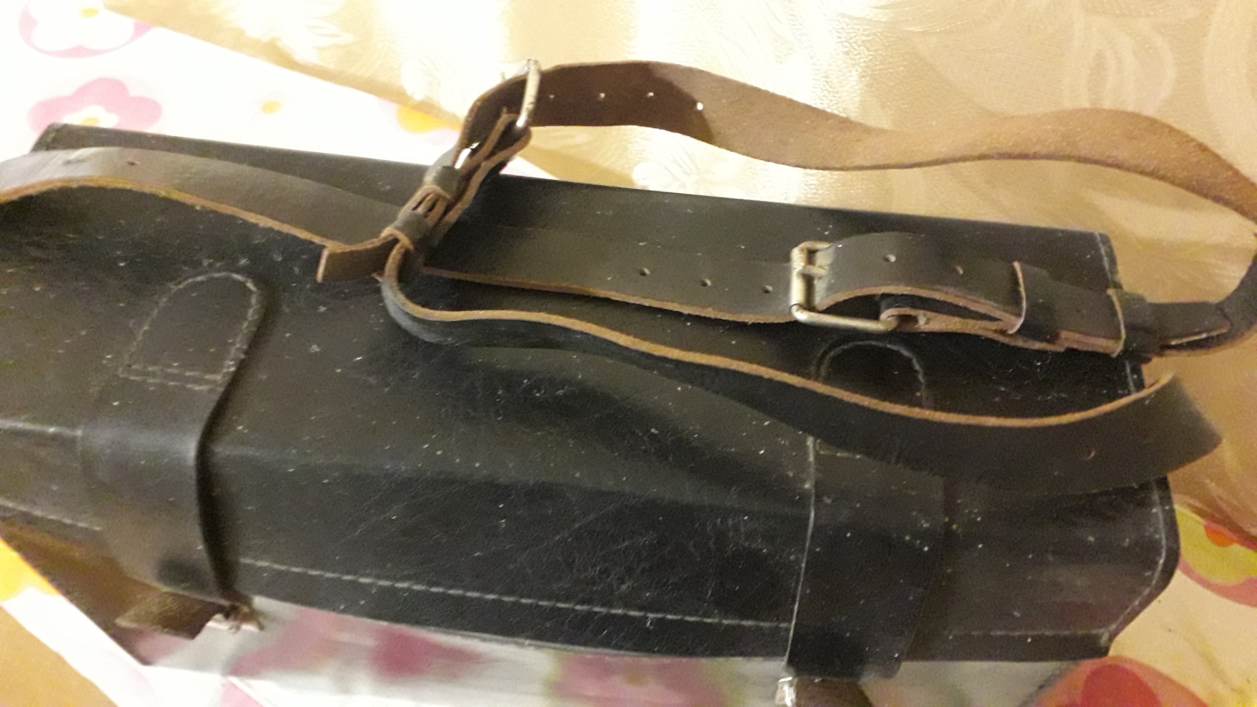 Зроблено фундаментально. Гарна товста якісна шкіра. Всередині замш. Наплічна шлея регулюється в двох місцях. Розміри: 370 / 230 / 125 мм.