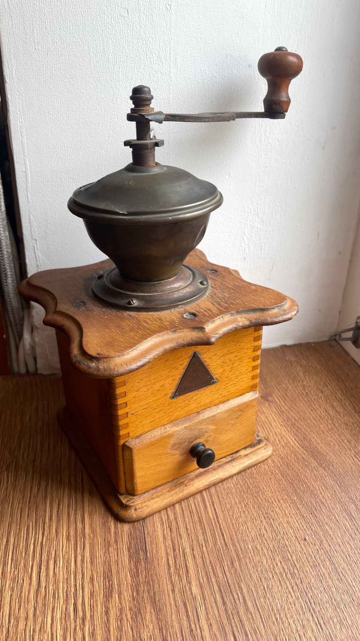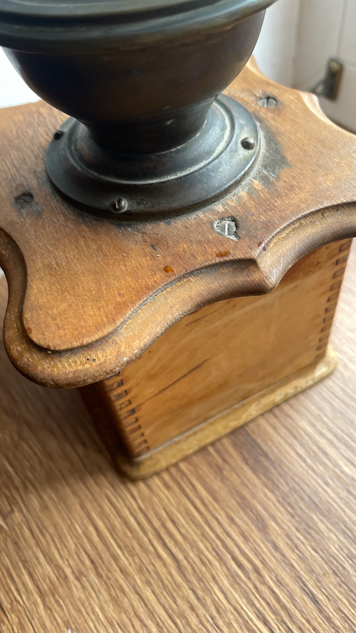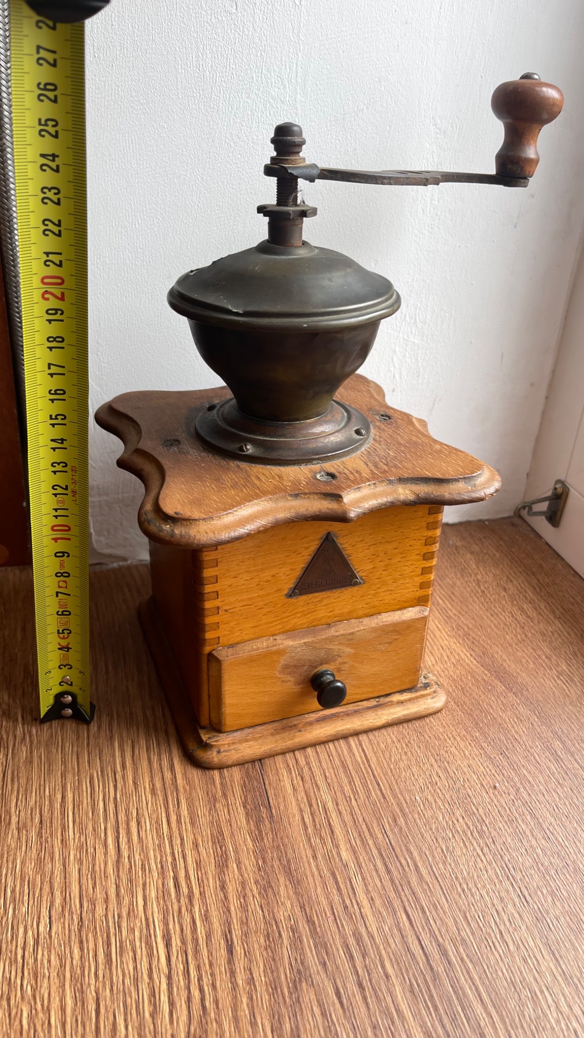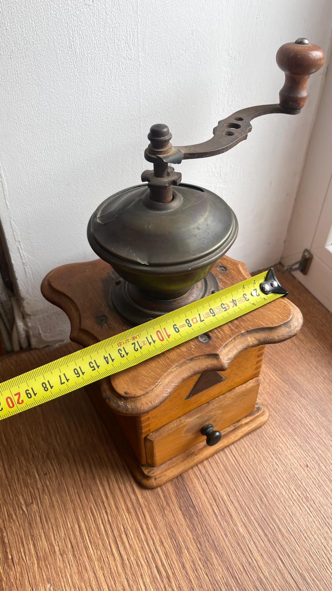 Все, як на фото. Судячи з дизайну, вироблена в кінці 19, максимум напочатку 20 століття у Німеччині. В робочому стані. Гарний інтер’єрний предмет на кухню чи в кафе.