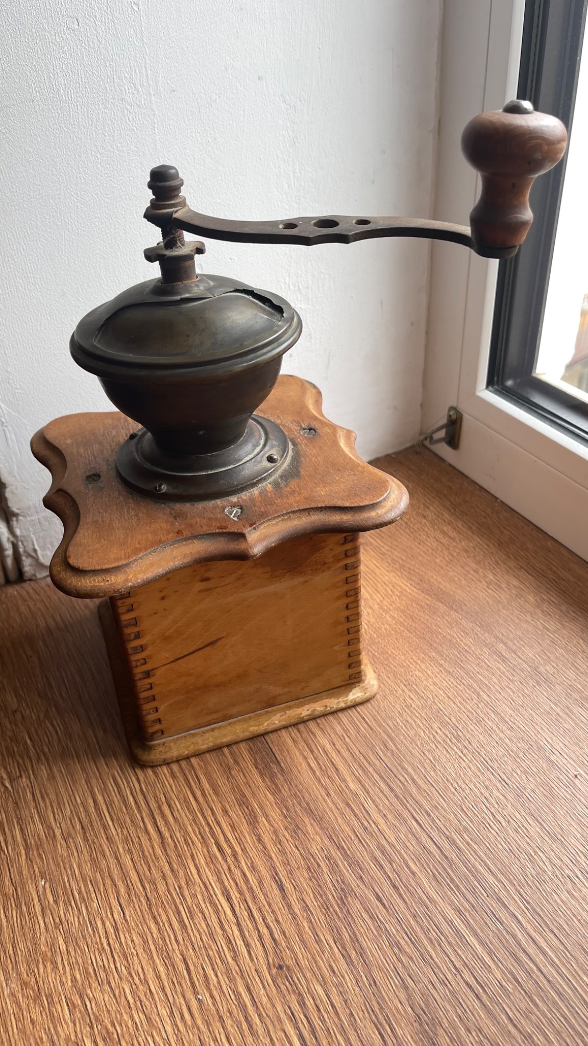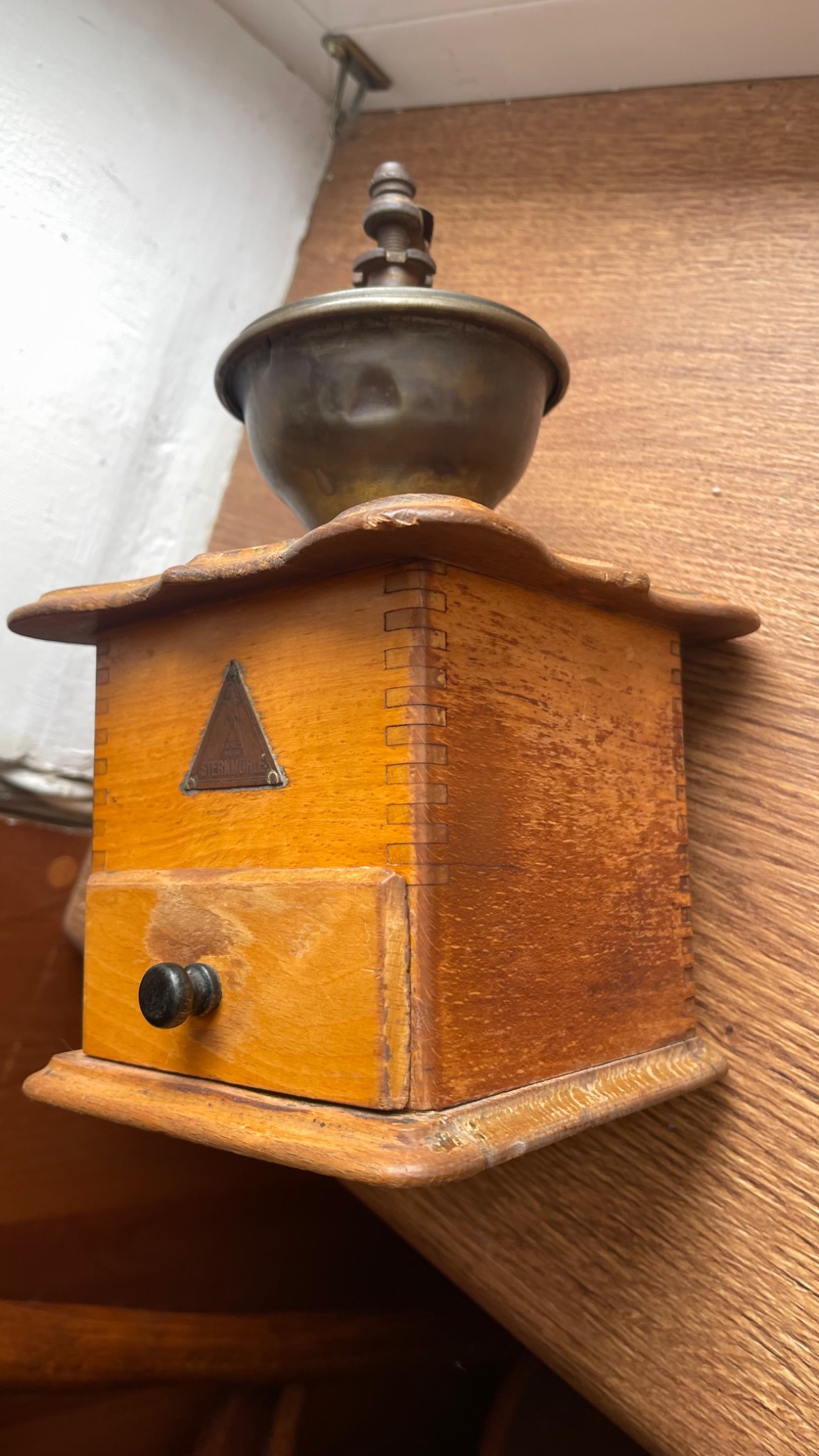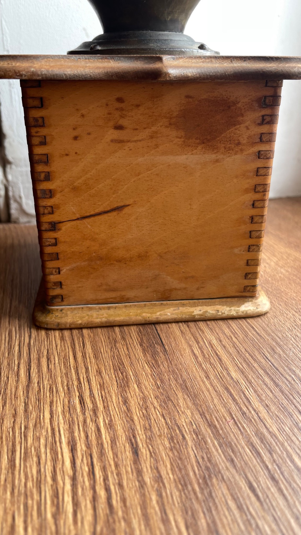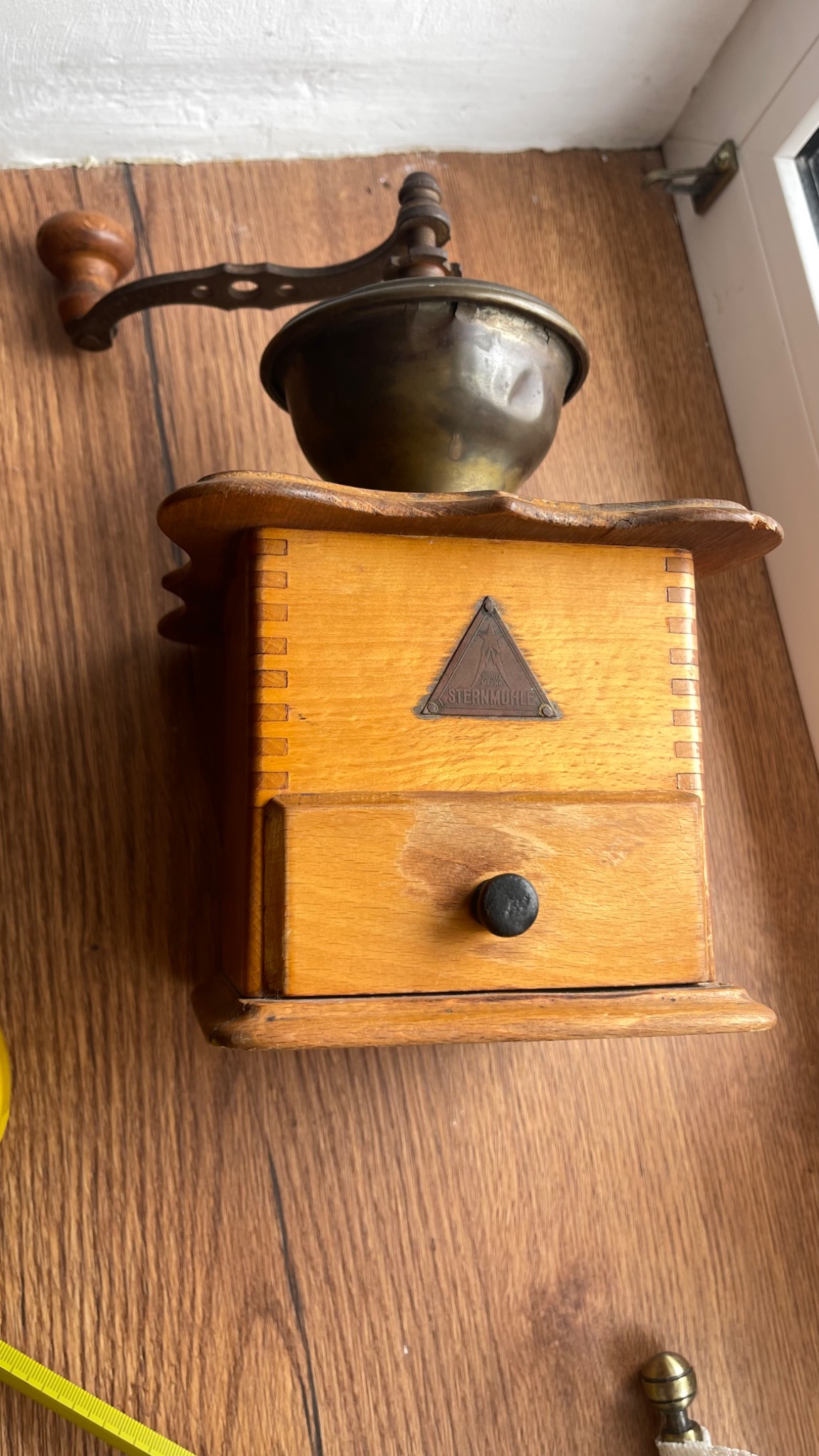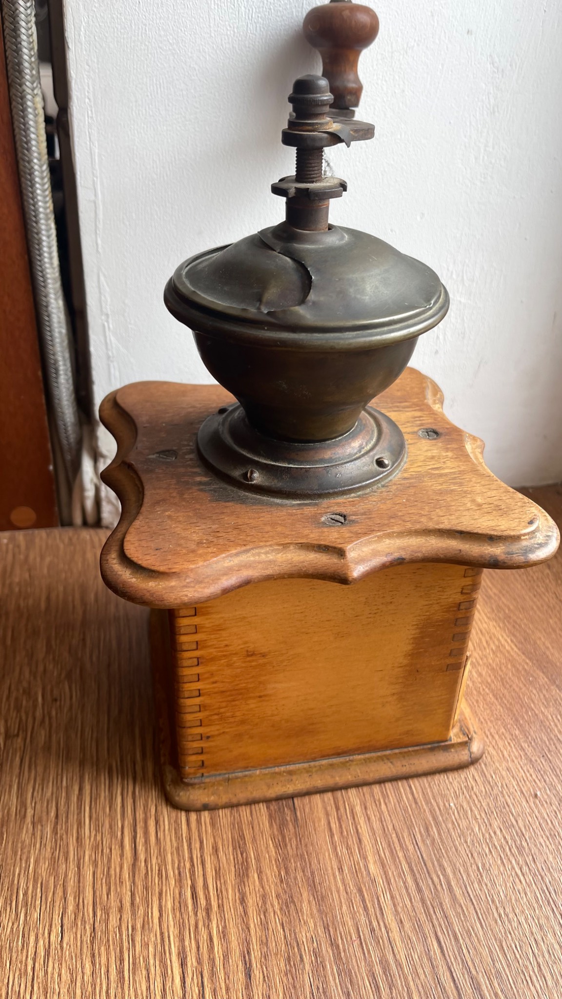 Все, як на фото. Судячи з дизайну, вироблена в кінці 19, максимум напочатку 20 століття у Німеччині. В робочому стані. Гарний інтер’єрний предмет на кухню чи в кафе.