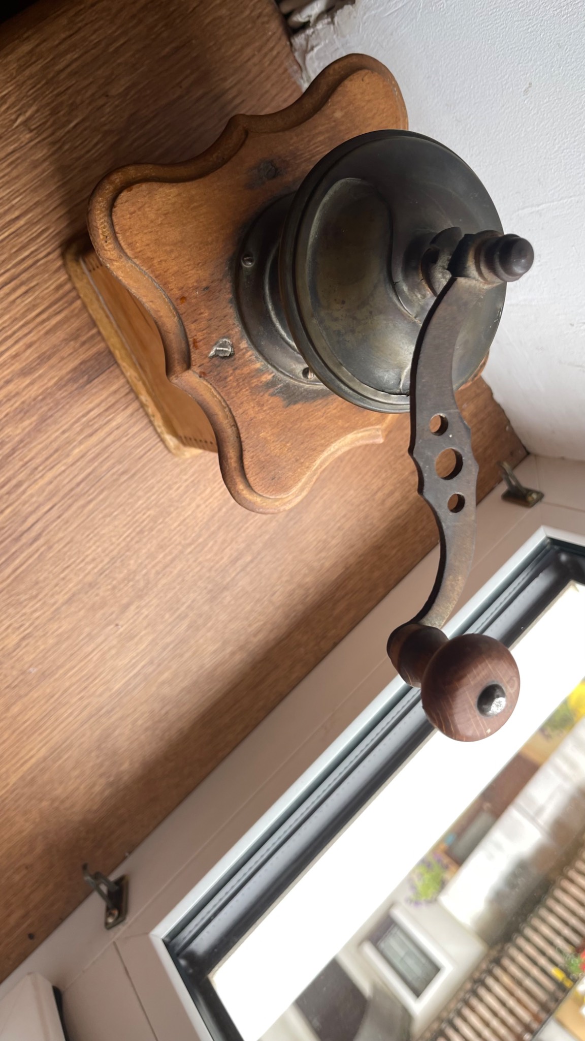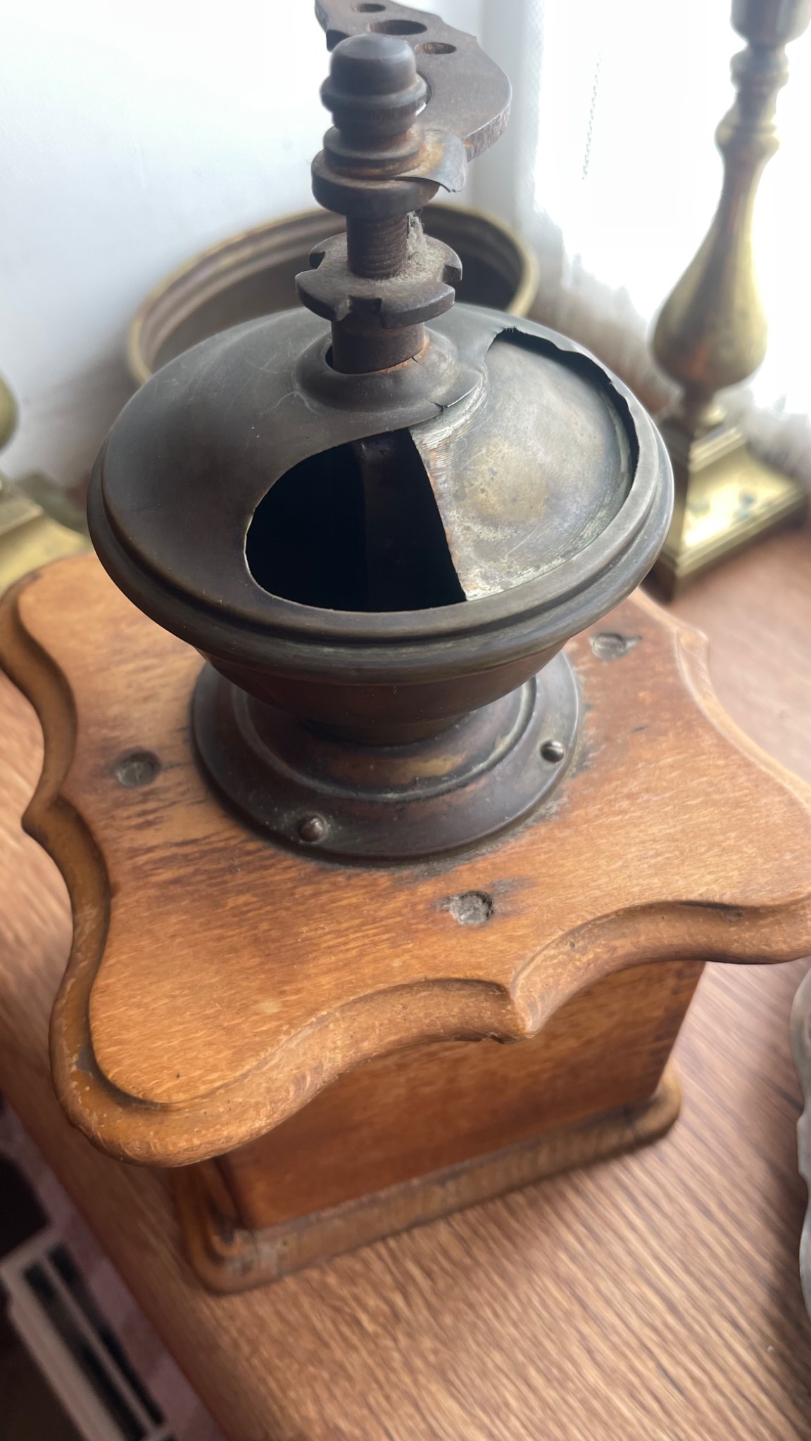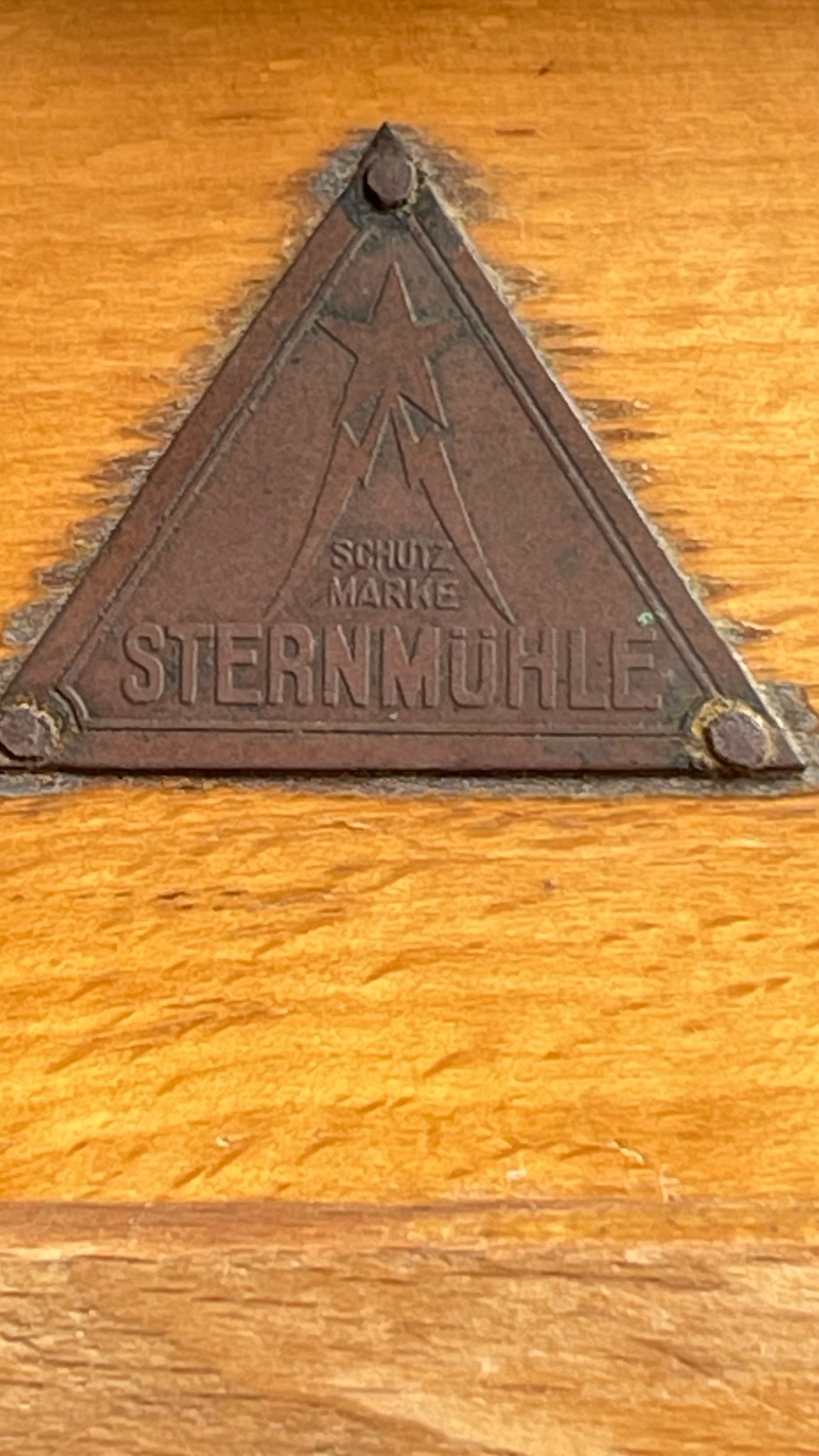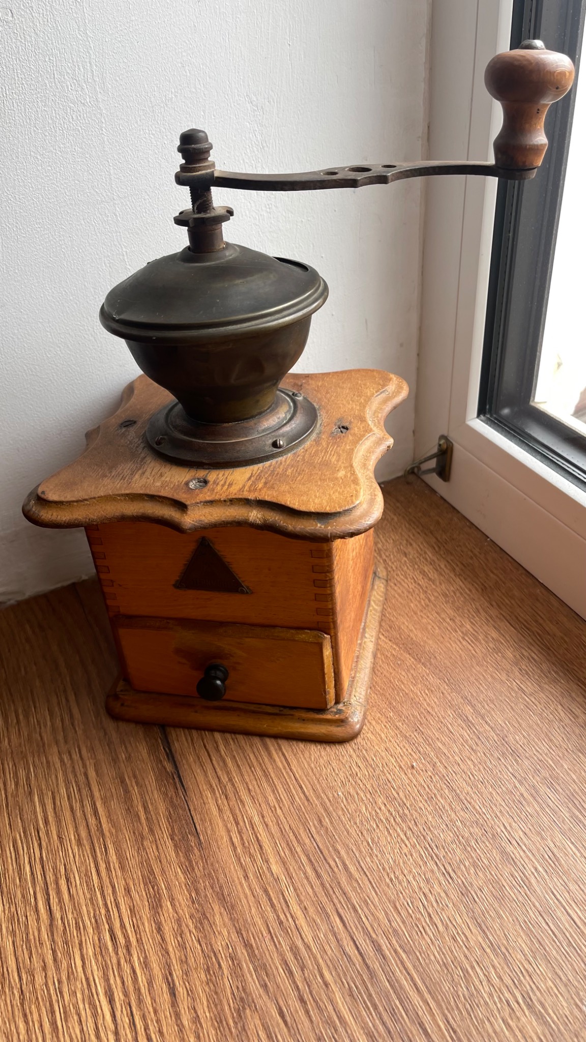 Все, як на фото. Судячи з дизайну, вироблена в кінці 19, максимум напочатку 20 століття у Німеччині. В робочому стані. Гарний інтер’єрний предмет на кухню чи в кафе.