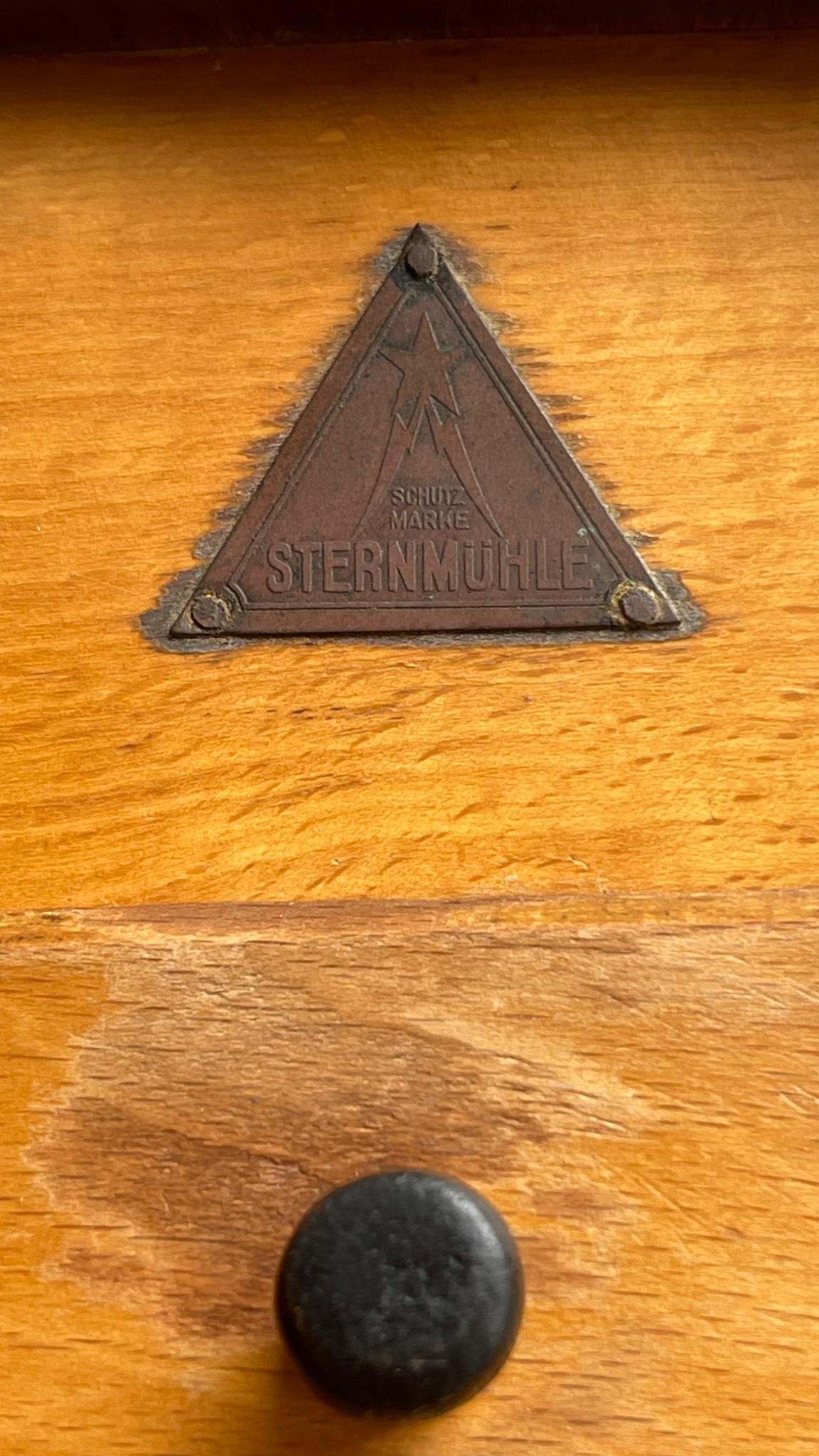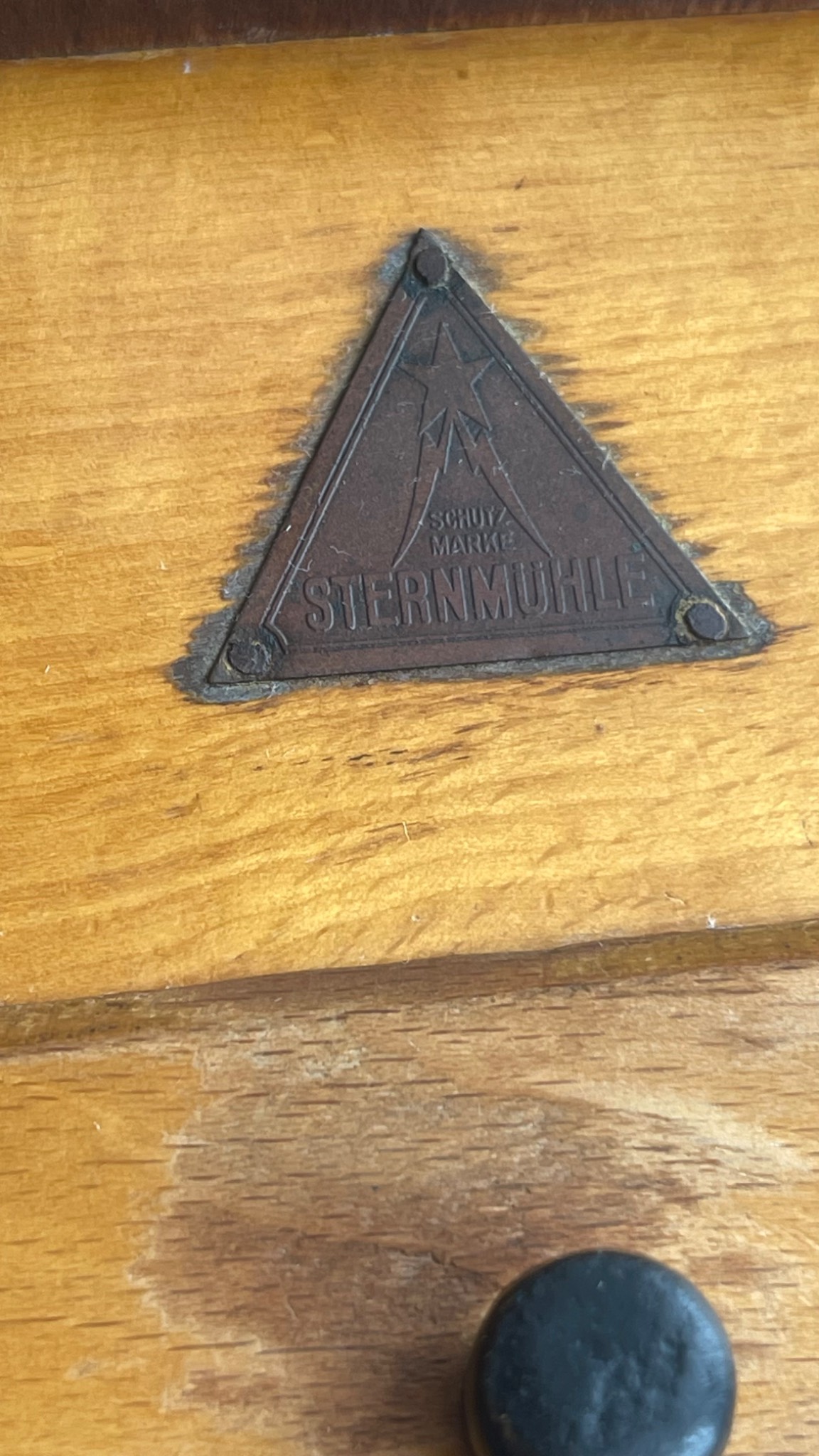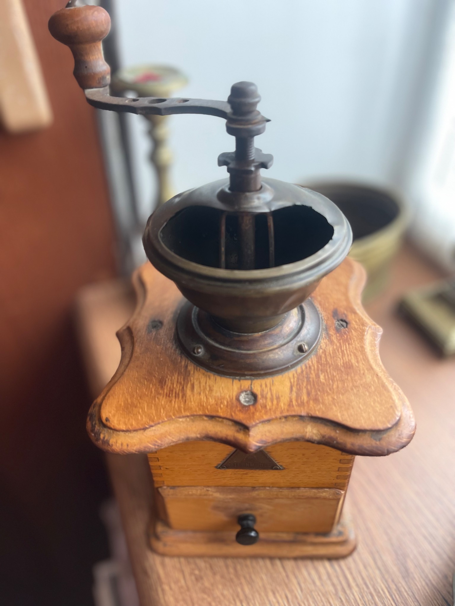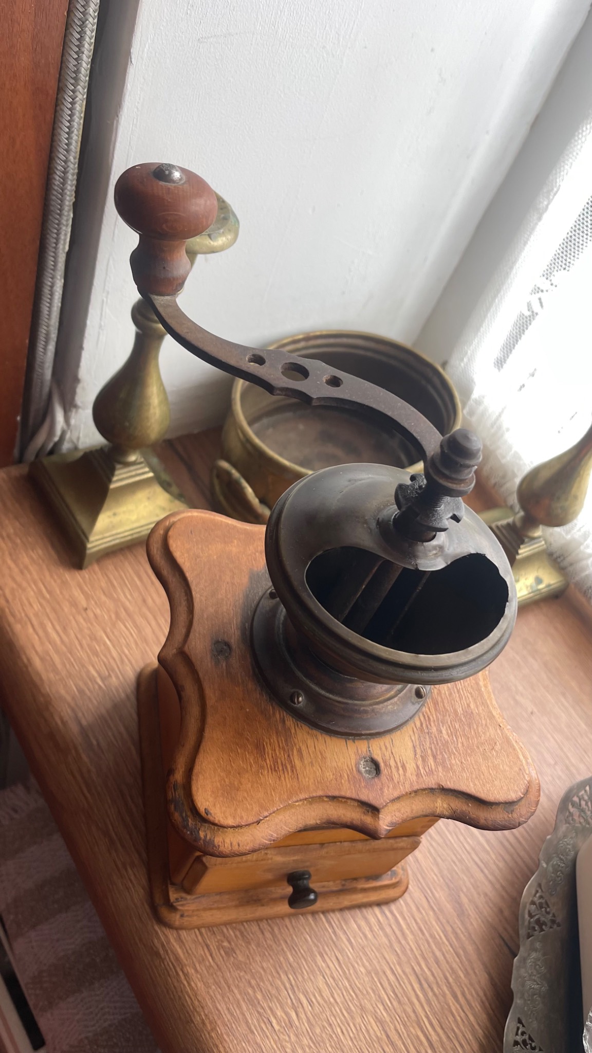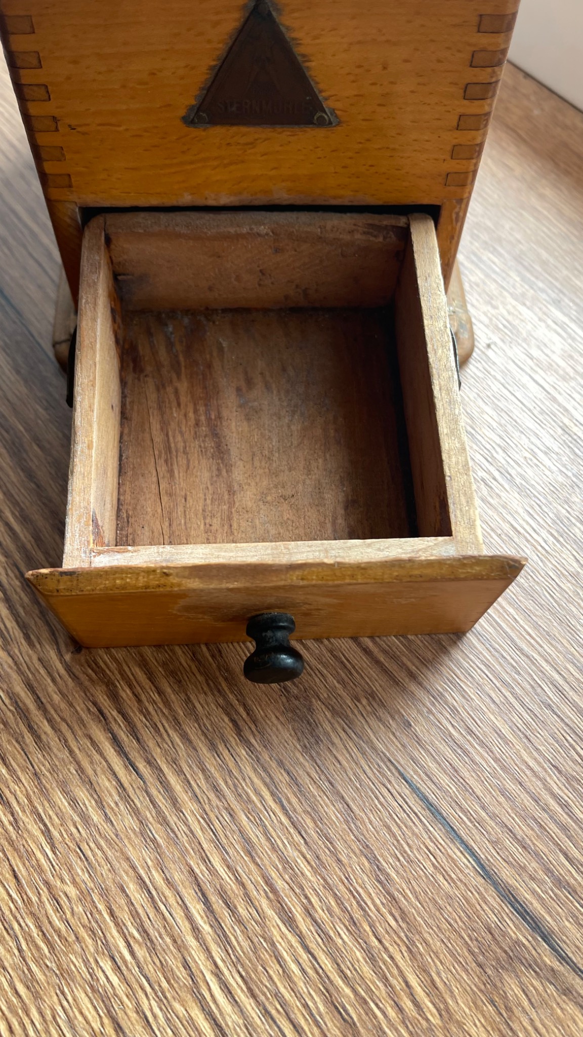 Все, як на фото. Судячи з дизайну, вироблена в кінці 19, максимум напочатку 20 століття у Німеччині. В робочому стані. Гарний інтер’єрний предмет на кухню чи в кафе.