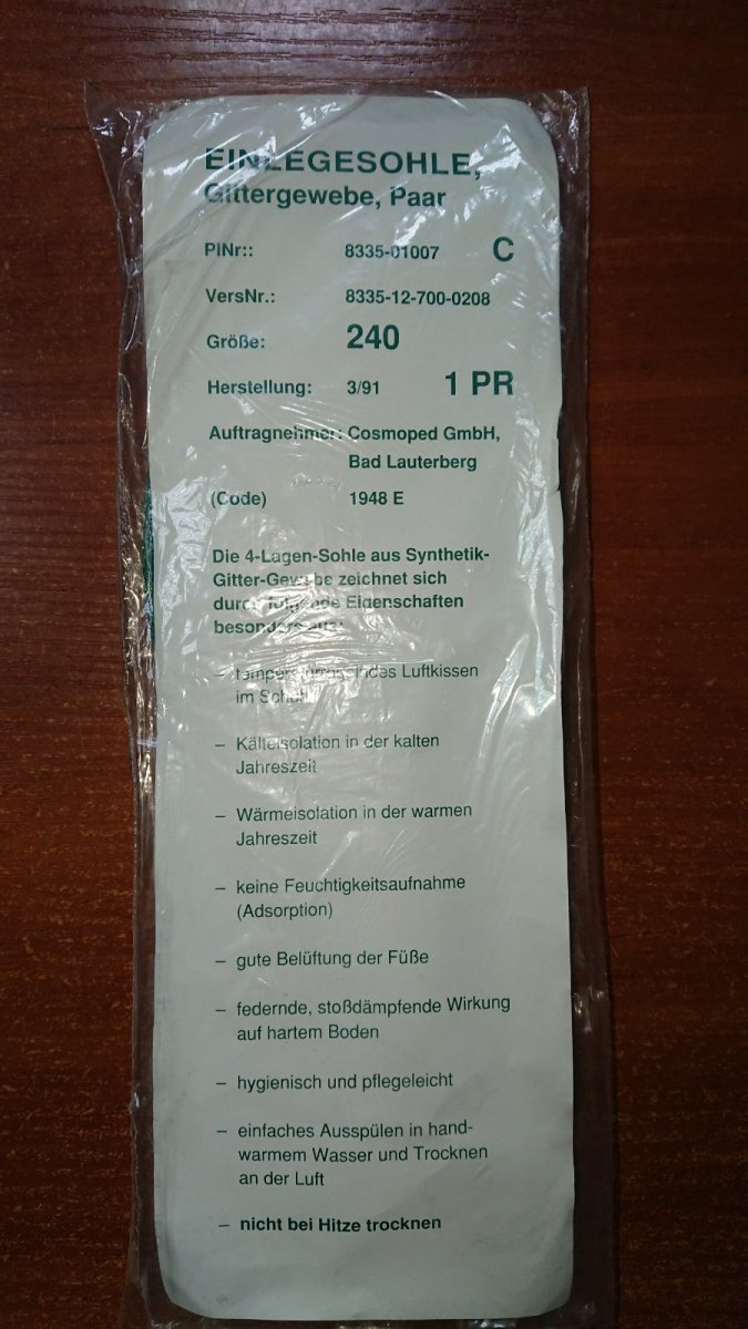 Оригинальные (контрактные) стельки для обуви, в соответствии с TL 8335-12-700 вооруженных сил ФРГ (Бундесвер)