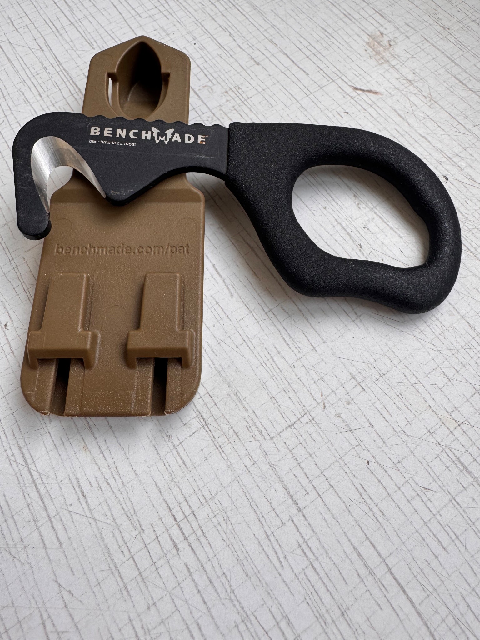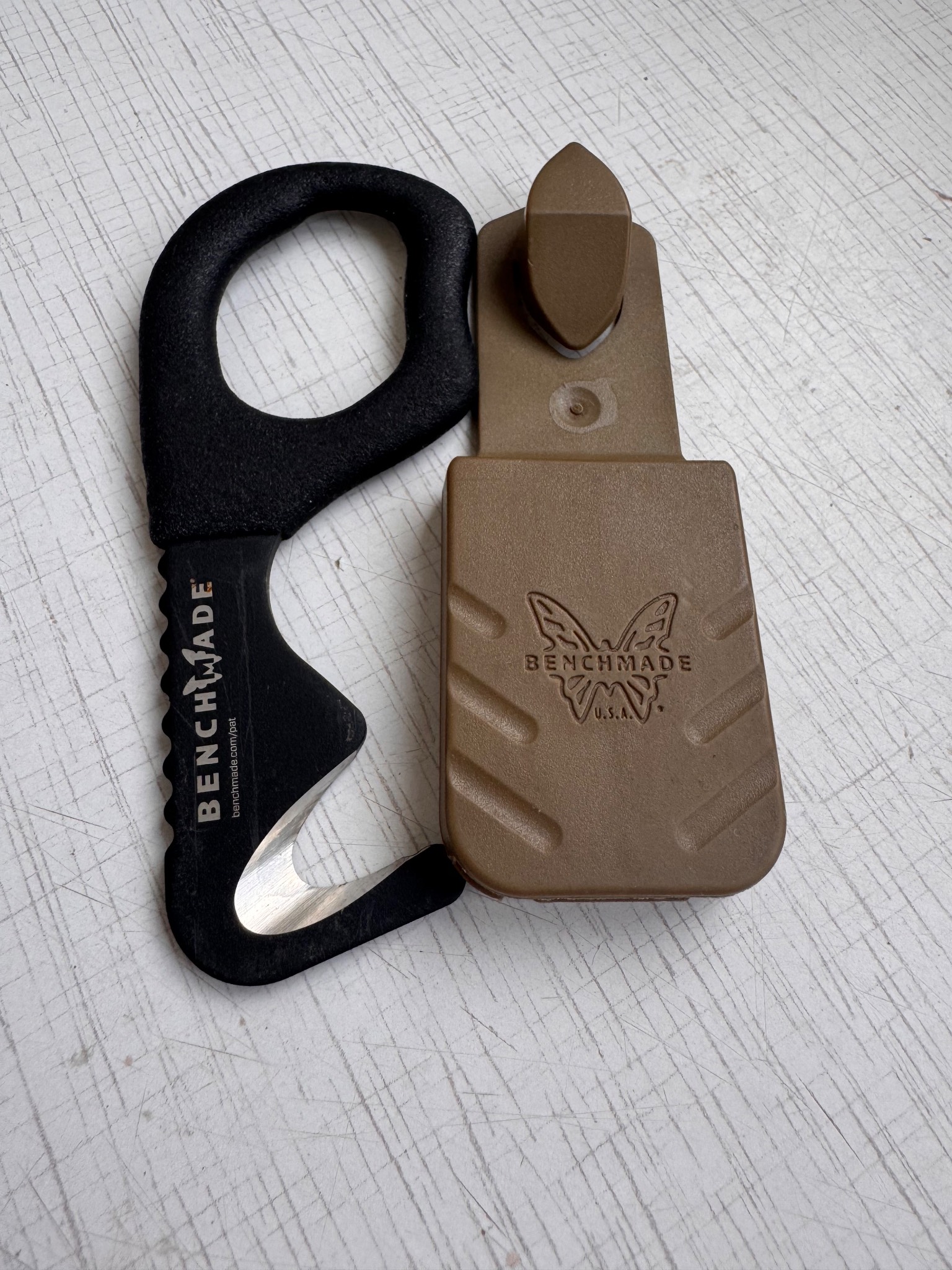 Споропорез Benchmade 7 Rescue Strap Cutter предназначен для быстрого и безопасного разрезания одежды/обуви, ремней безопасности, веревок и т.д. в разных чрезвычайных (экстремальных) ситуациях. Он может являться частью снаряжения первой необходимости спасателей, подводников, альпинистов и военных. В аварийных ситуациях поможет освободиться от ремней обездвиженному человеку. Округленный конец крюка обеспечивает безопасность при контакте с телом. Стропопорез небольшой, компактный, отлично подходит для легкой переноски. Большая ручка с 7 крючками хорошо работает с руками в перчатках, а ручка с покрытием обеспечивает лучший хват. Это лезвие из нержавеющей стали 440C покрыто черным порошковым покрытием с виниловым покрытием ручки и оснащено переносным футляром, совместимым с Molle.