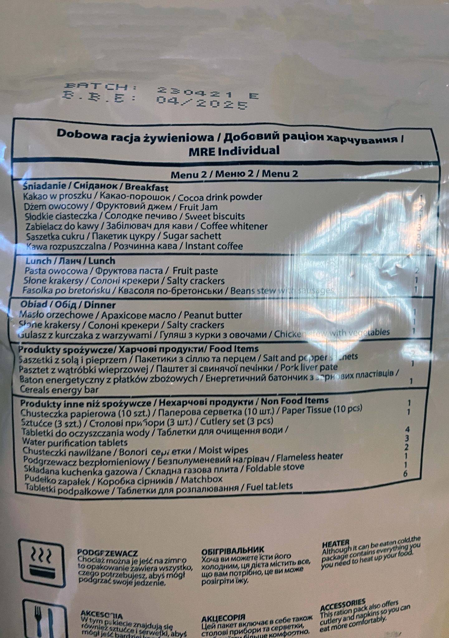Откройте для себя новый образец суточного Польского сухого пайка с комплектом для разогрева!