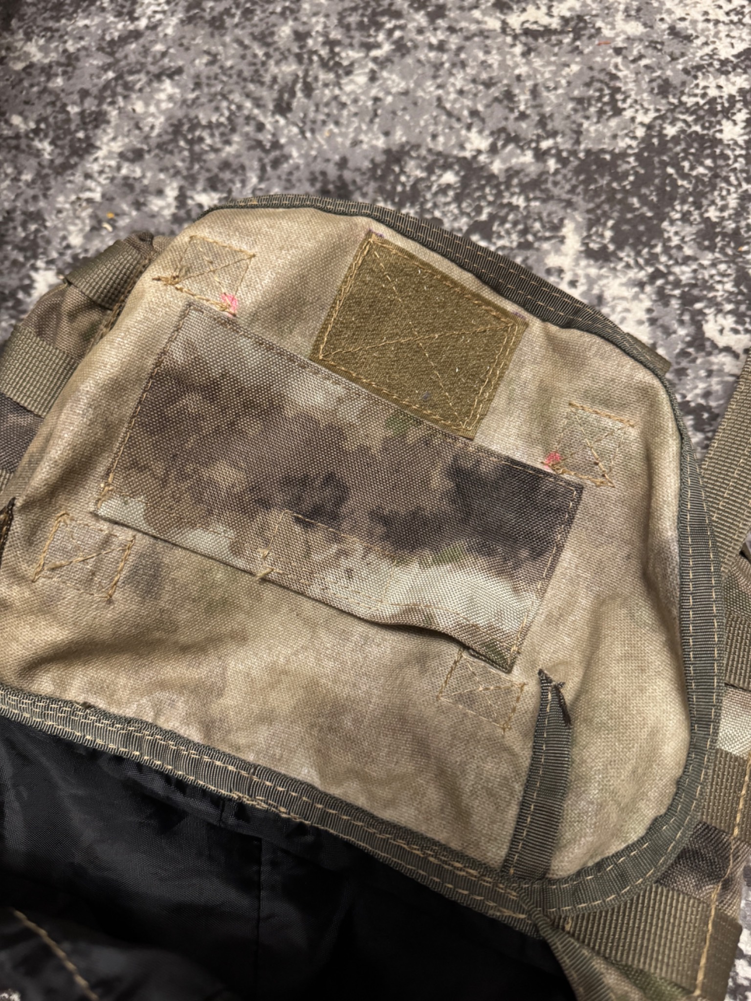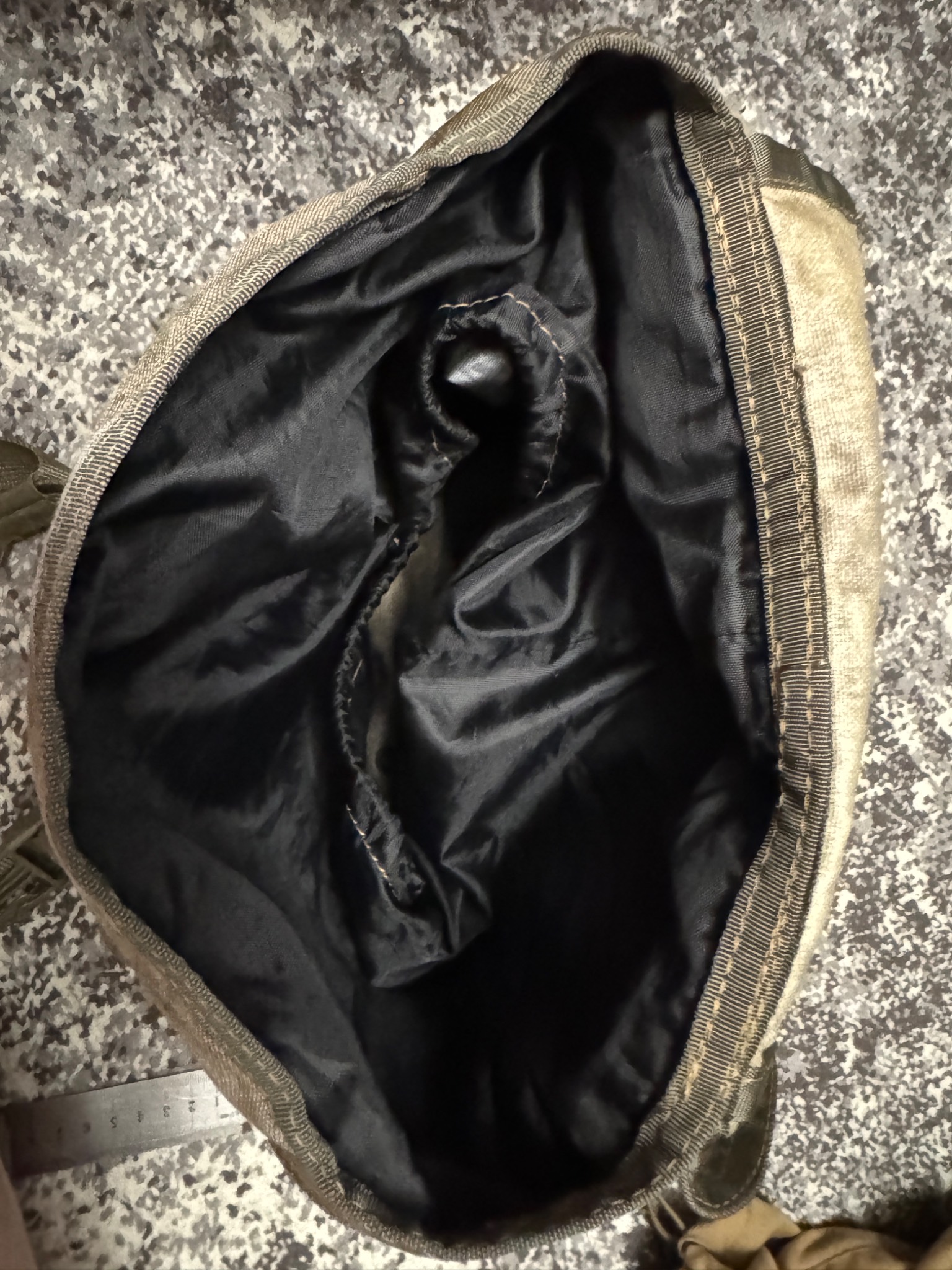 Горловина сумки обладнана тубусом з утяжкою для надійного підривання речей від вологи та запобігання випаданню дрібних предметів. Для впевненого кріплення на спорядженні сухарка комплектується двома додатковими кліпсами MOLLE (PALS).