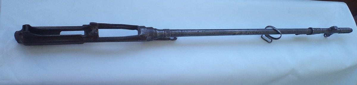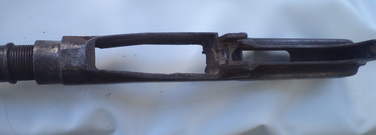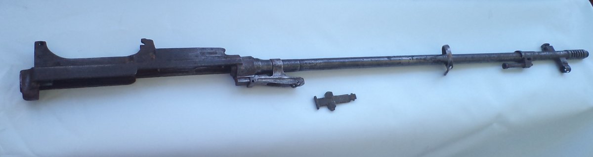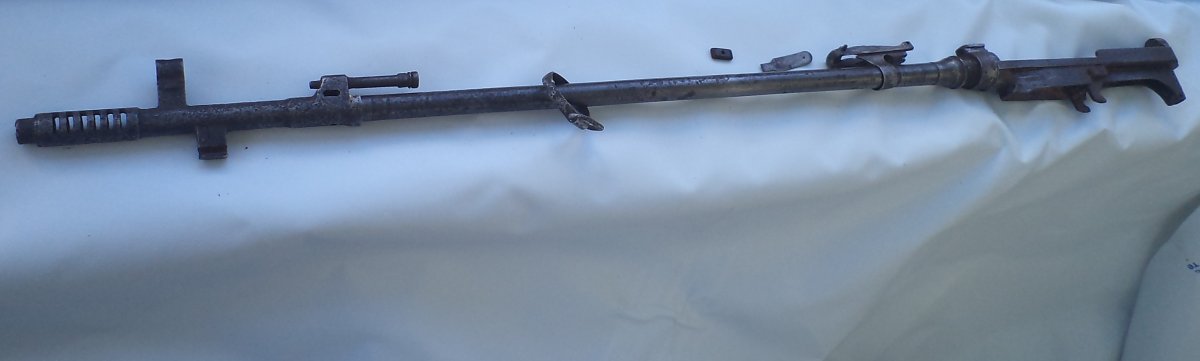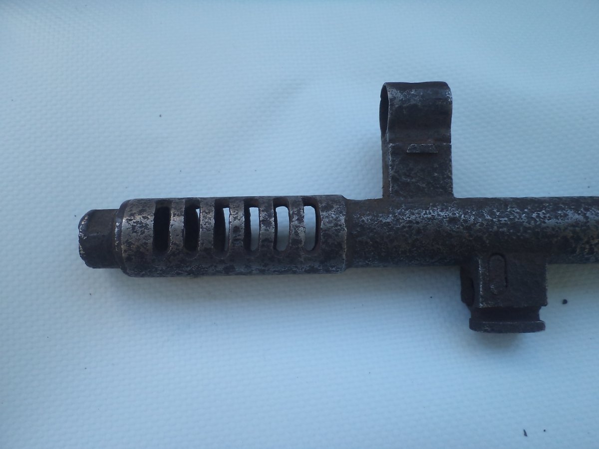 Бодрый коп. Больше для макета. Ствол и рама ровнялись, визуально вроде ровно. в патроннике микровмятины. Пряцельная планка изогнута, не ровнялась. А так металл в очень хорошем состоянии. В стволе просверлено отверстие, как дезактив. Ствол и дтк откручивается.