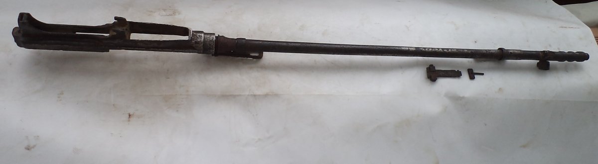 Коп. В патроннике гильза. На дульном тормозе трещина. Отверстия в стволе просверлю в месте, которое укажет покупатель.