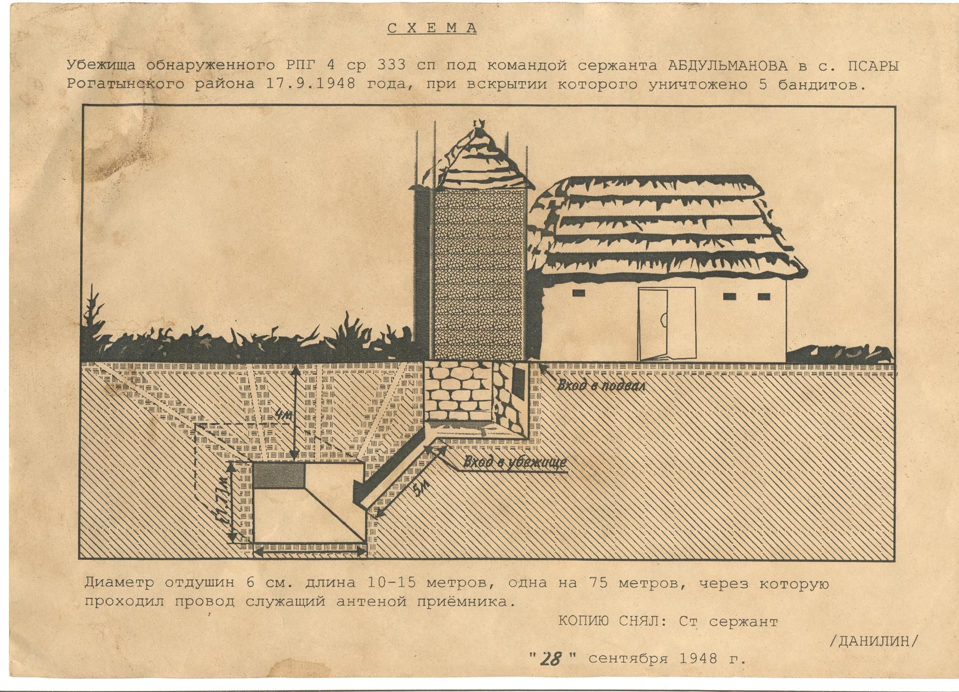 Схема криївки УПА в с. Псари Рогатинського району.