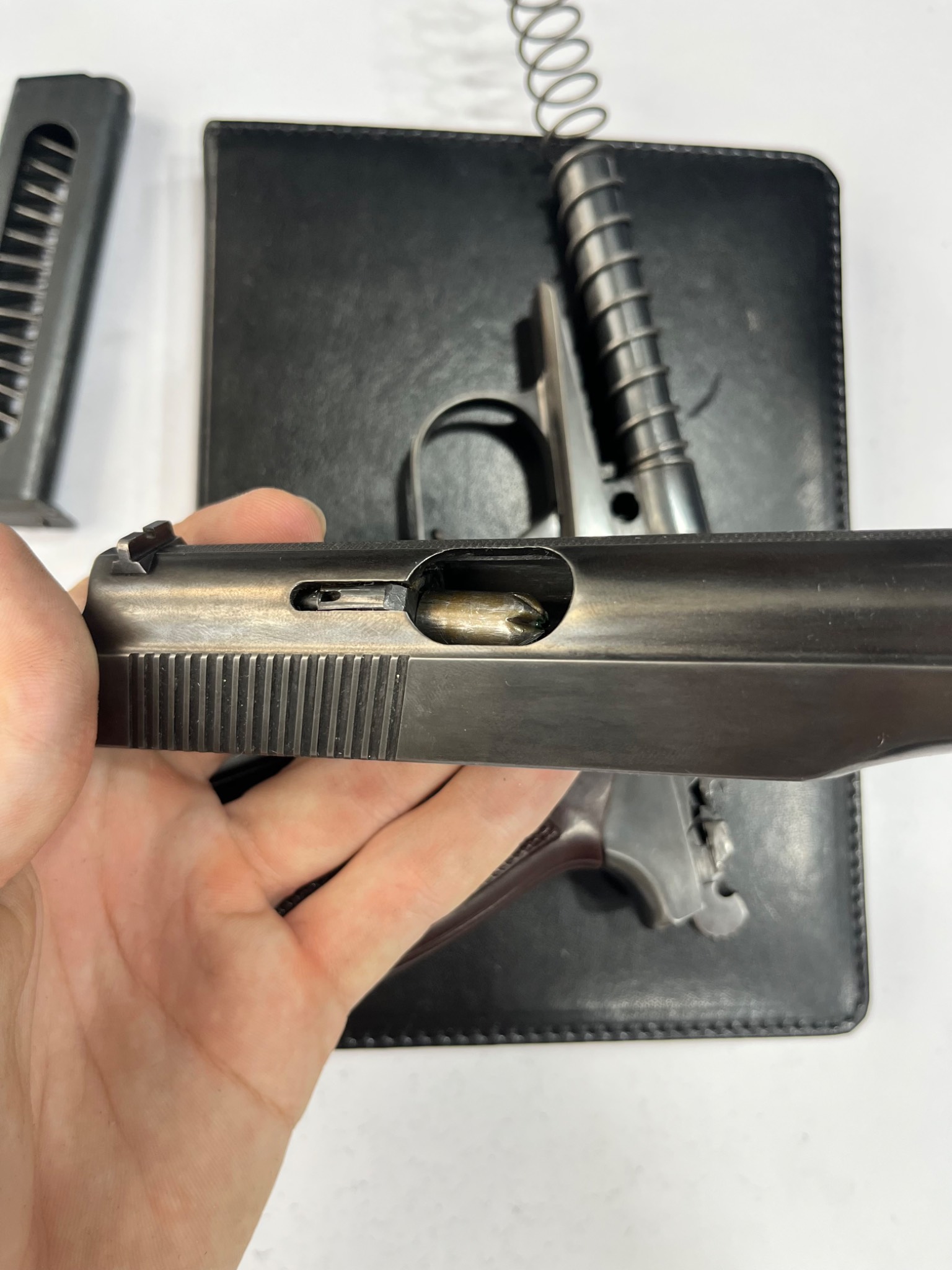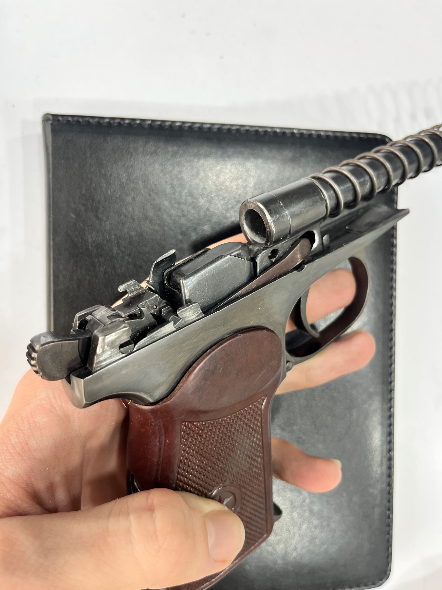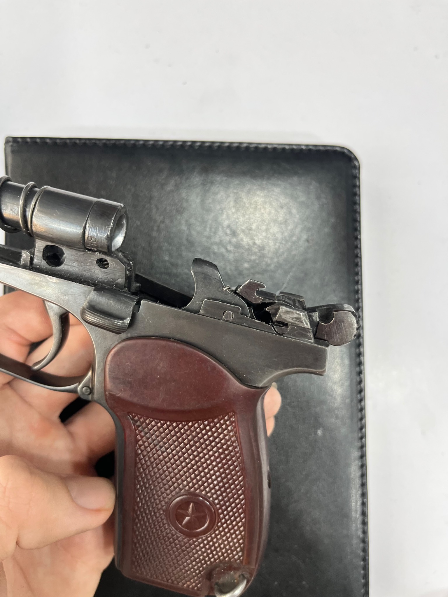 схп пм, личинка мастера GMW, серьга 13 мм. Ствол стоит оригинальный российский 10тк в прошлом боевой(есть срезанные нарезы) выход газов через ствол, на просвет не видно тк заводская деактивация с несколькими перегородками. Личинка под 10тк но работает и с 9пак.Автоматика работает без проблем, патрон досылается, гильза вылетает, на ЗЗ встаёт. выстрел происходит без проблем.Могу кинуть видео / доп. фото(писать в лс),отвечу на вопросы. Хорошее воронение, Отправлю наложенным, с минимальной предоплатой за доставку.отправка собранным/ разобранным по желанию
