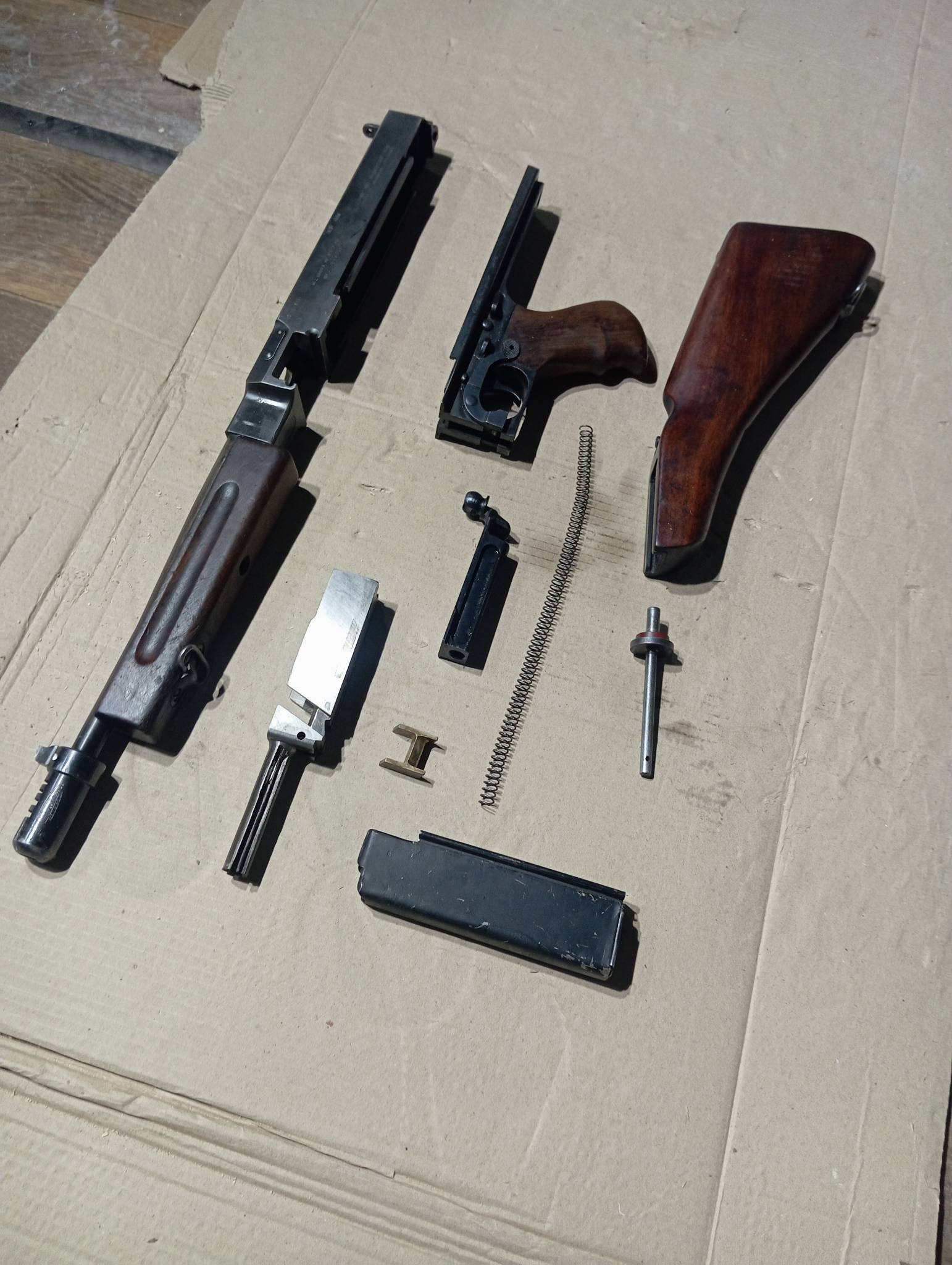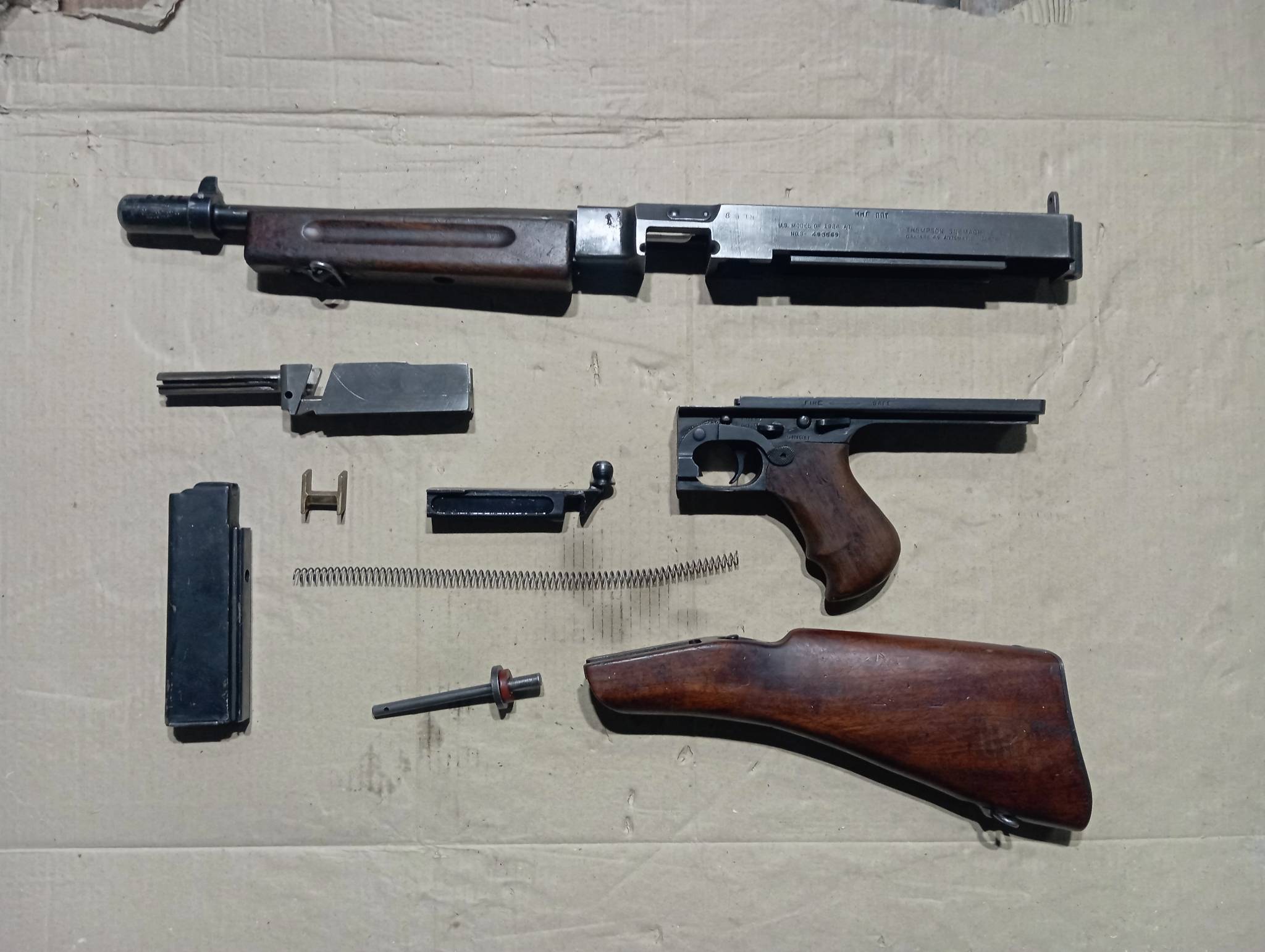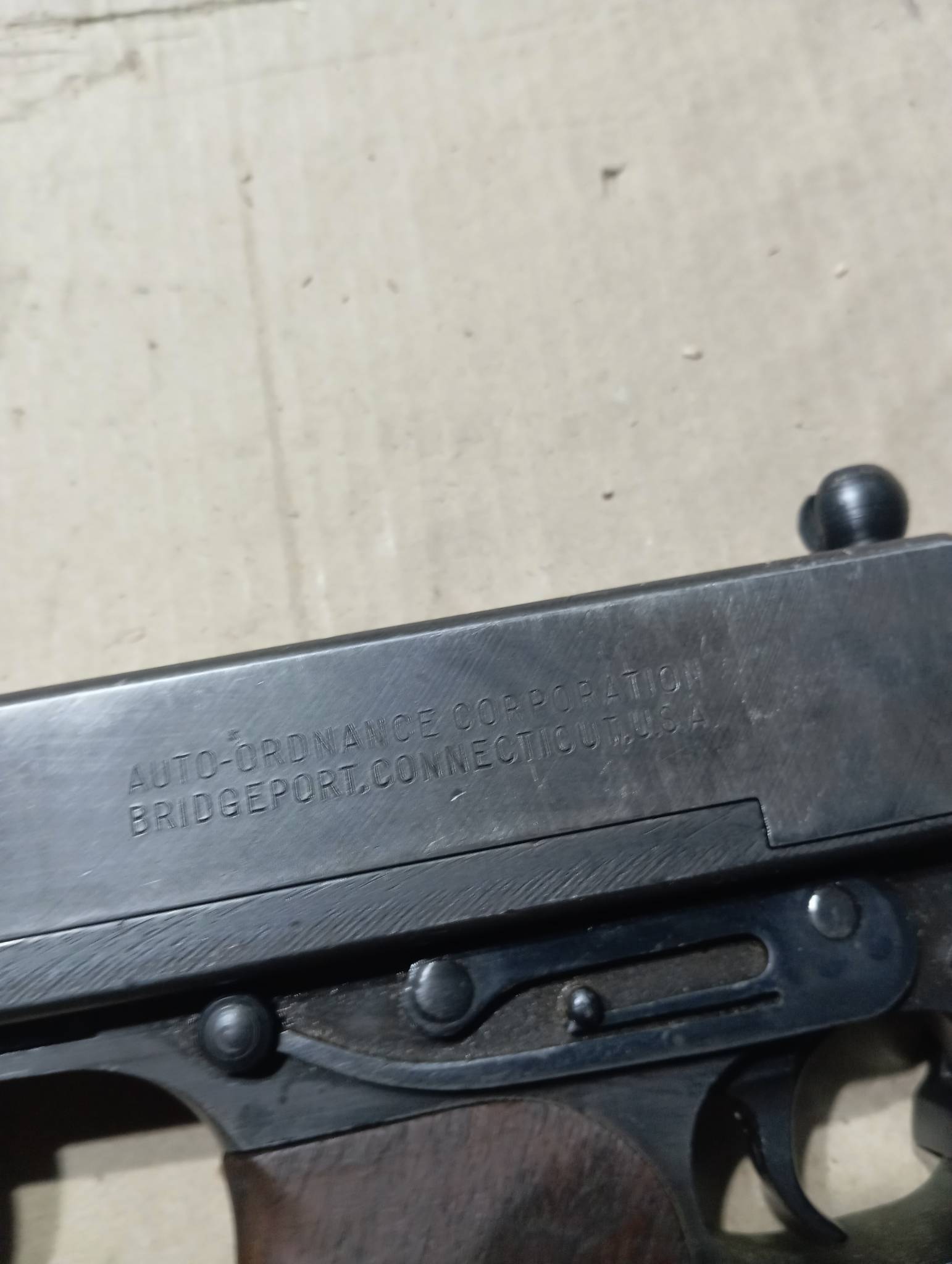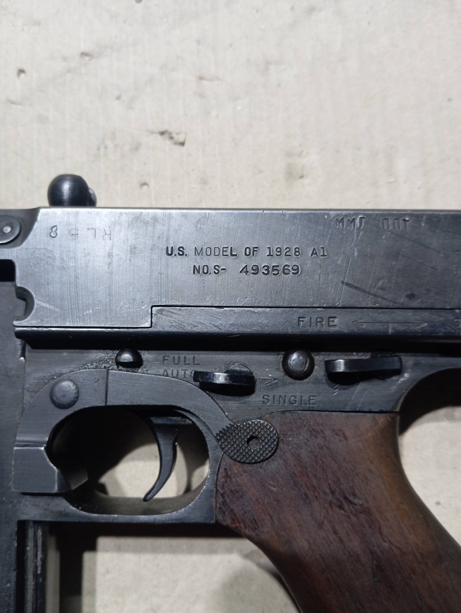 Пістолет-кулемет Thompson m1928 під сигнально-холості патрони МПУ. Відновлений з ммг. Пропил ствола заварений, сам ствол штифтований. Постріл бойовим набоєм неможливий. Магазин перероблений під МПУ, затвор також. Гарна річ в колекцію.