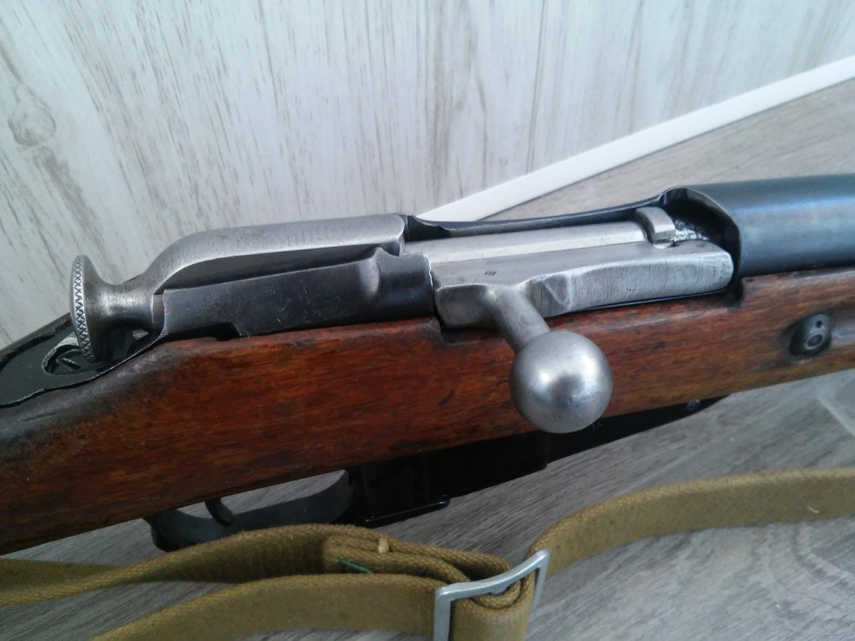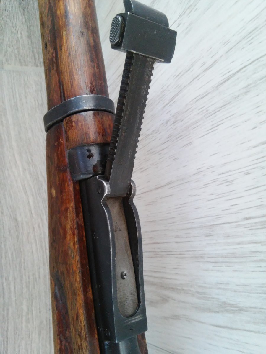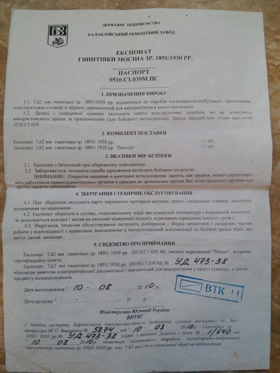Деактив: в стволе вставлен лайнер(сужающий канал ствола и препятствующий применению боевых патронов)+на конце ствола капля сварки. Все детали складские, за исключение личины (отличный чердак), дерево "военное" с глазками, но есть ремвставки.