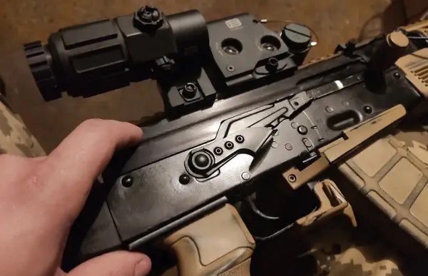 Представляю Вашій увазі тактичний перемикач вогню (запобіжник) з важелем перемикання під вказівний палець для автоматів Калашникова калібру 7.62 (АКМ, АКМС, РПК і т. д.) та калібру 5,45 (АК74, АКС74, АКСУ, РПК-74 і т. д.) і всіх цивільних версій на базі АКМ і АК74 (Форт, Маяк, Вулкан і т. д.). Призначений для зняття із запобіжника і перемикання вогню на одиночний або АВТОМАТИЧНИЙ вогонь правою рукою вказівним пальцем БЕЗ ВІДРИВУ РУКИ ВІД ПІСТОЛЕТНОЇ РУКОЯТКИ.