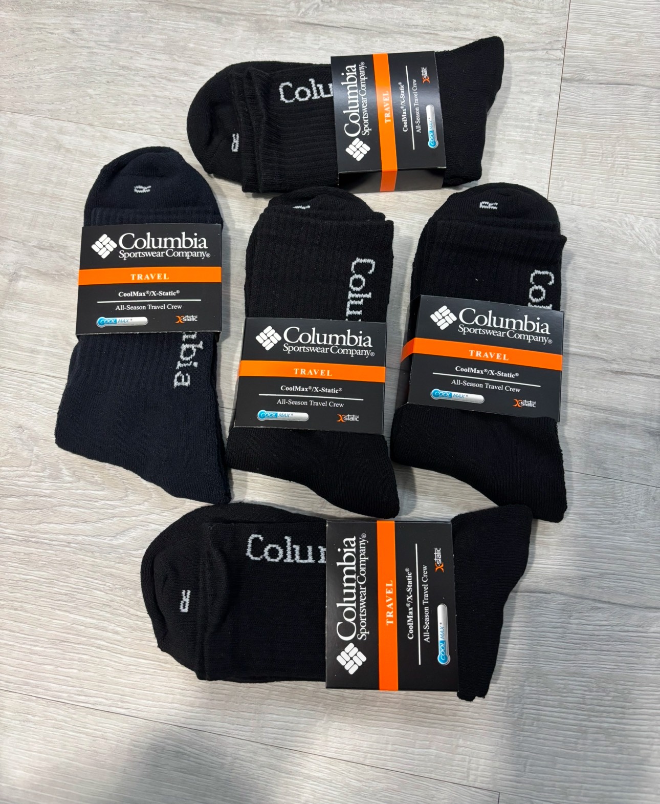 Склад: 57% котон (вовна), 35% акрил, 5% інші волокна, 3% спандекс. Розмір: 42-45. Термоноски Columbia зберігають тепло при температурі -25 °C. X-STATIC волокна безпечно пригнічує зростання бактерій, які викликають неприємний запах.
