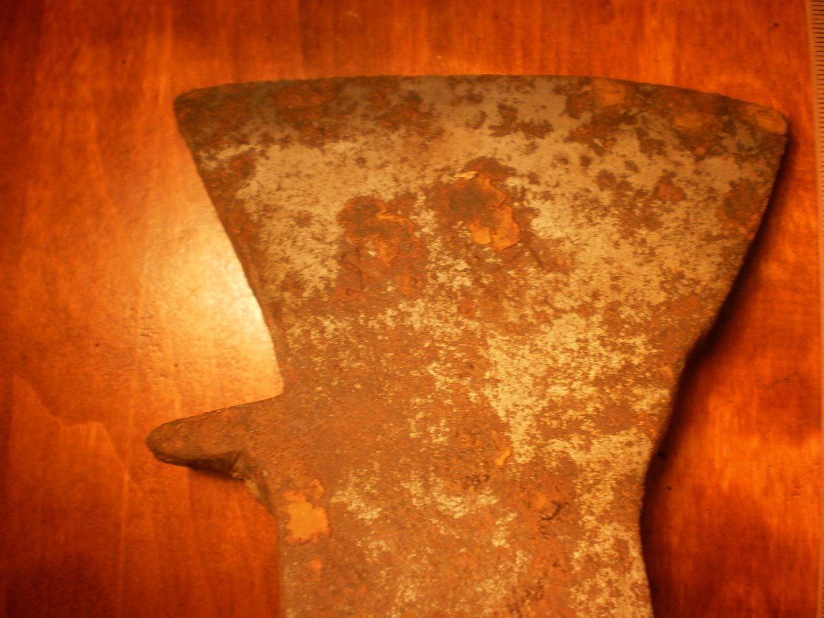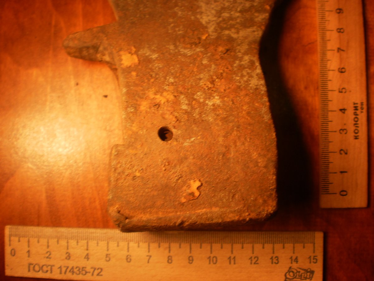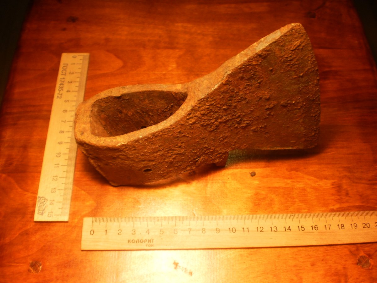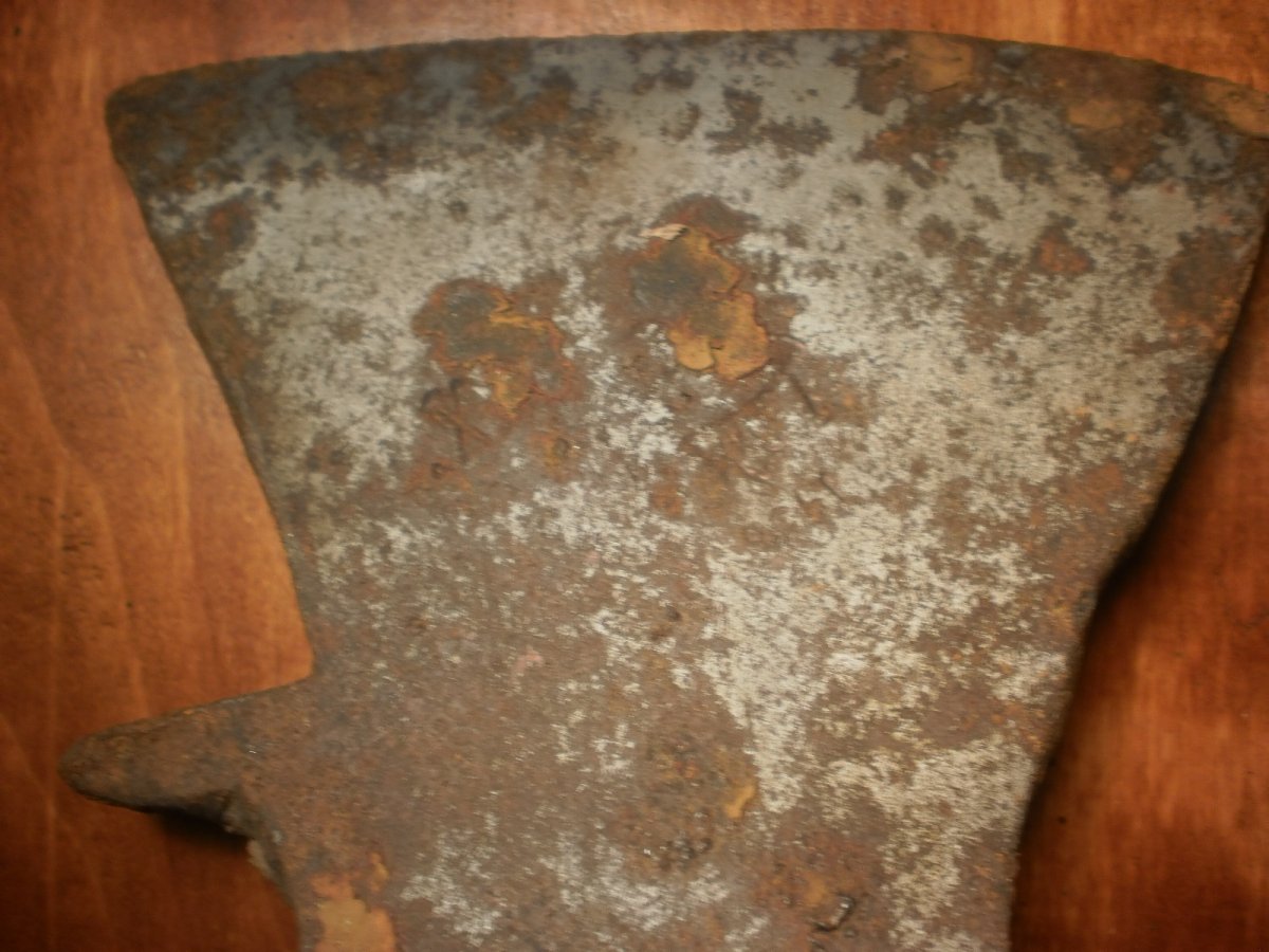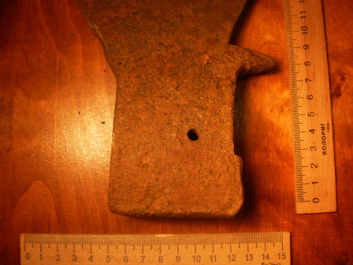 Топор-колун.Копаный.Помыт водой.Не чищен и не точен.Имеет в обухе сквозные два отверствия под штифт вместо клинышка.Но можно топорище ставить и на клин.