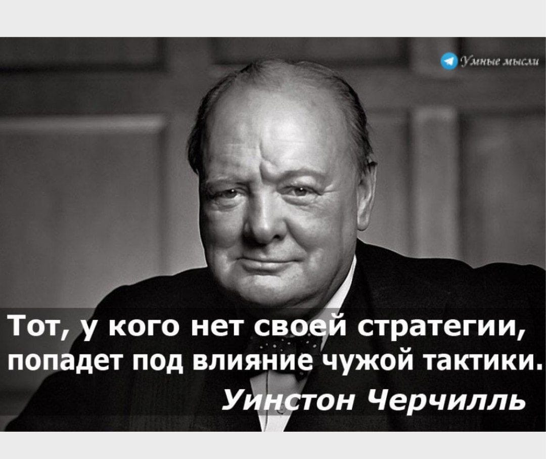 Тот у кого нет своей стратегии, попадает под влияние чужой тактики. Уинстон Черчилль.