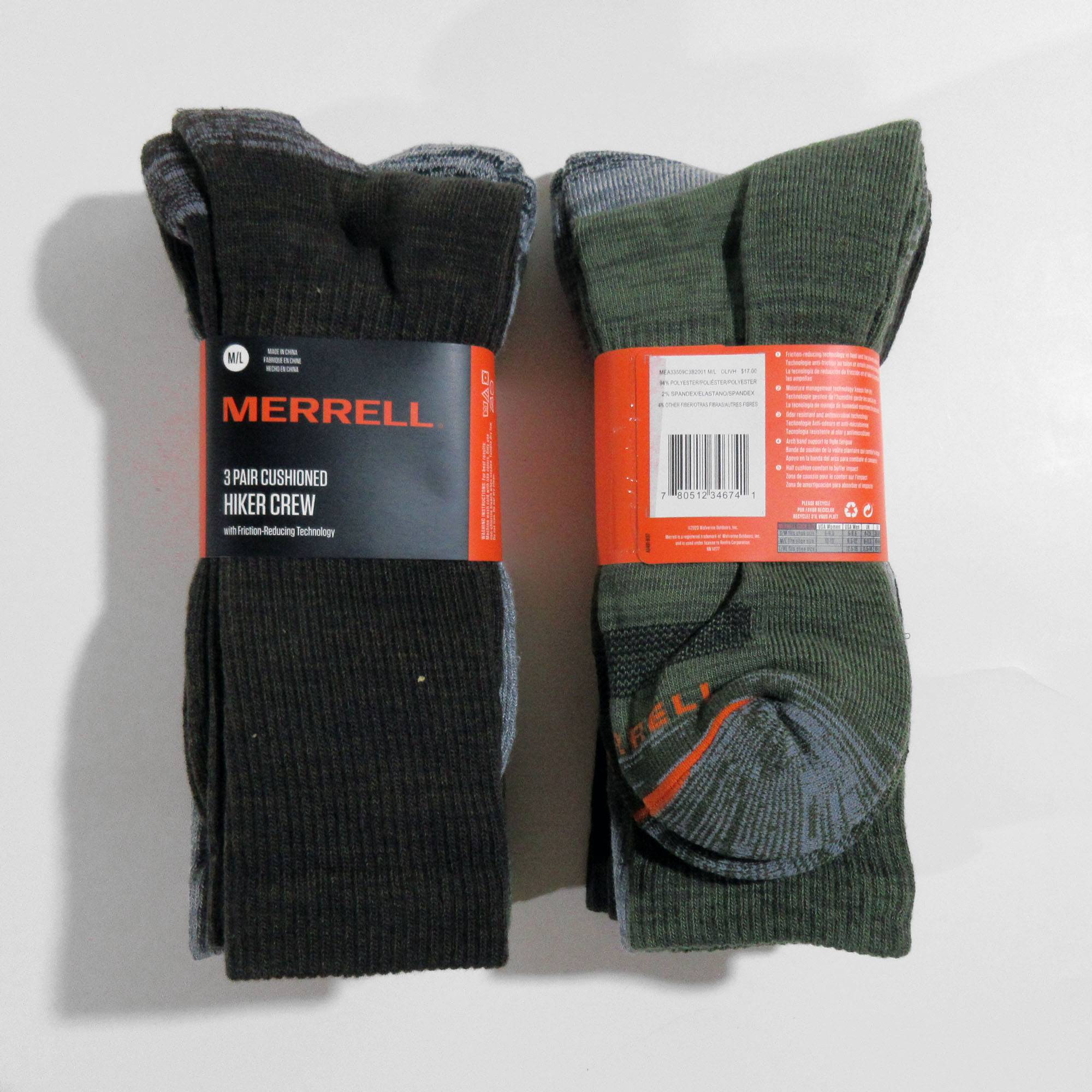 Трекінгові шкарпетки Merrell Cushioned Hiking Crew (ціна за упаковку 3 пари) (в наявності 2 шт.)