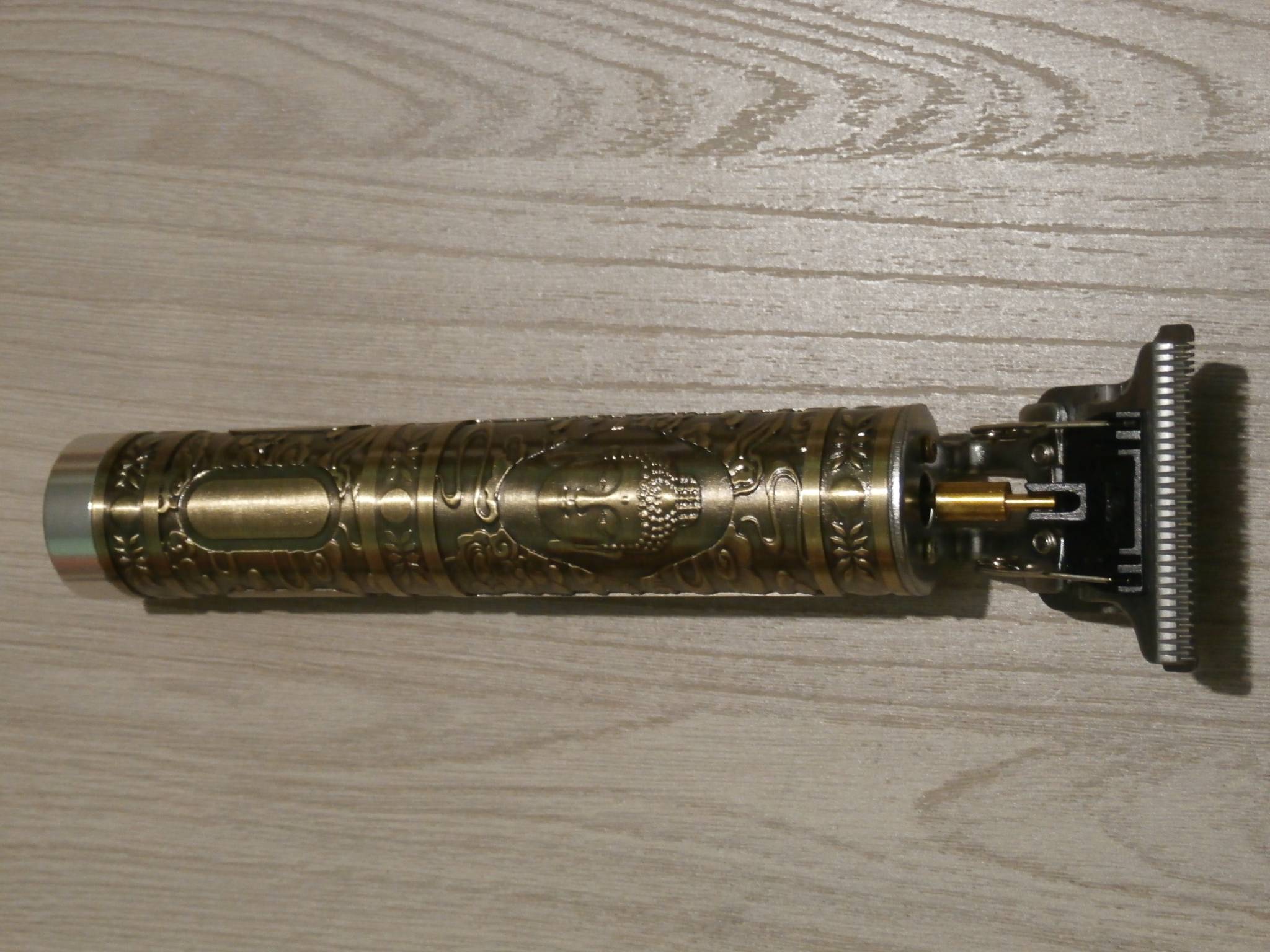 Тример Vintage Professional Barber Золотий Будда для стрижки волосся та окантовки бороди,Акумуляторний 18650,зарядка micro USB,4 насадки різної величини
