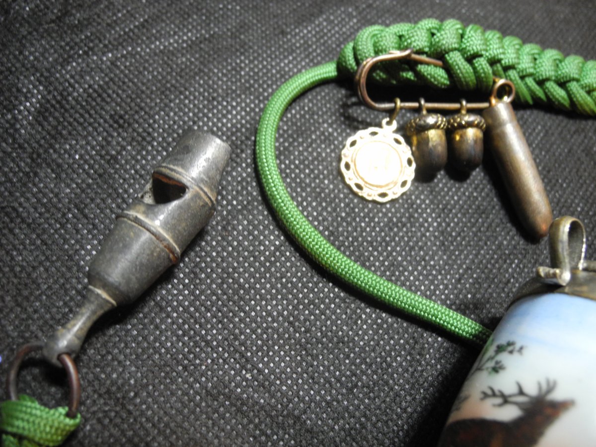 знака на полевое кепи (булавка, цинковые желуди, пуля Манлихер, религиозный медальон), бонусом аксельбант с шарами-помпонами и пуговицей.