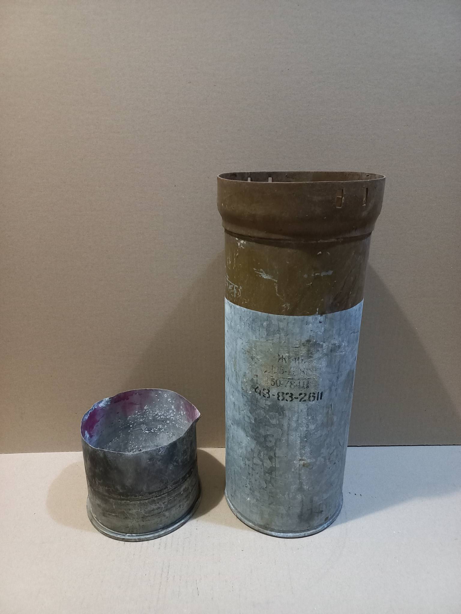 Тубус (контейнер) для транспортування заряду Ж 40 125-Д81. Кришка відсутня. Тубус - оцинковка, 2,5 - 3 кг.