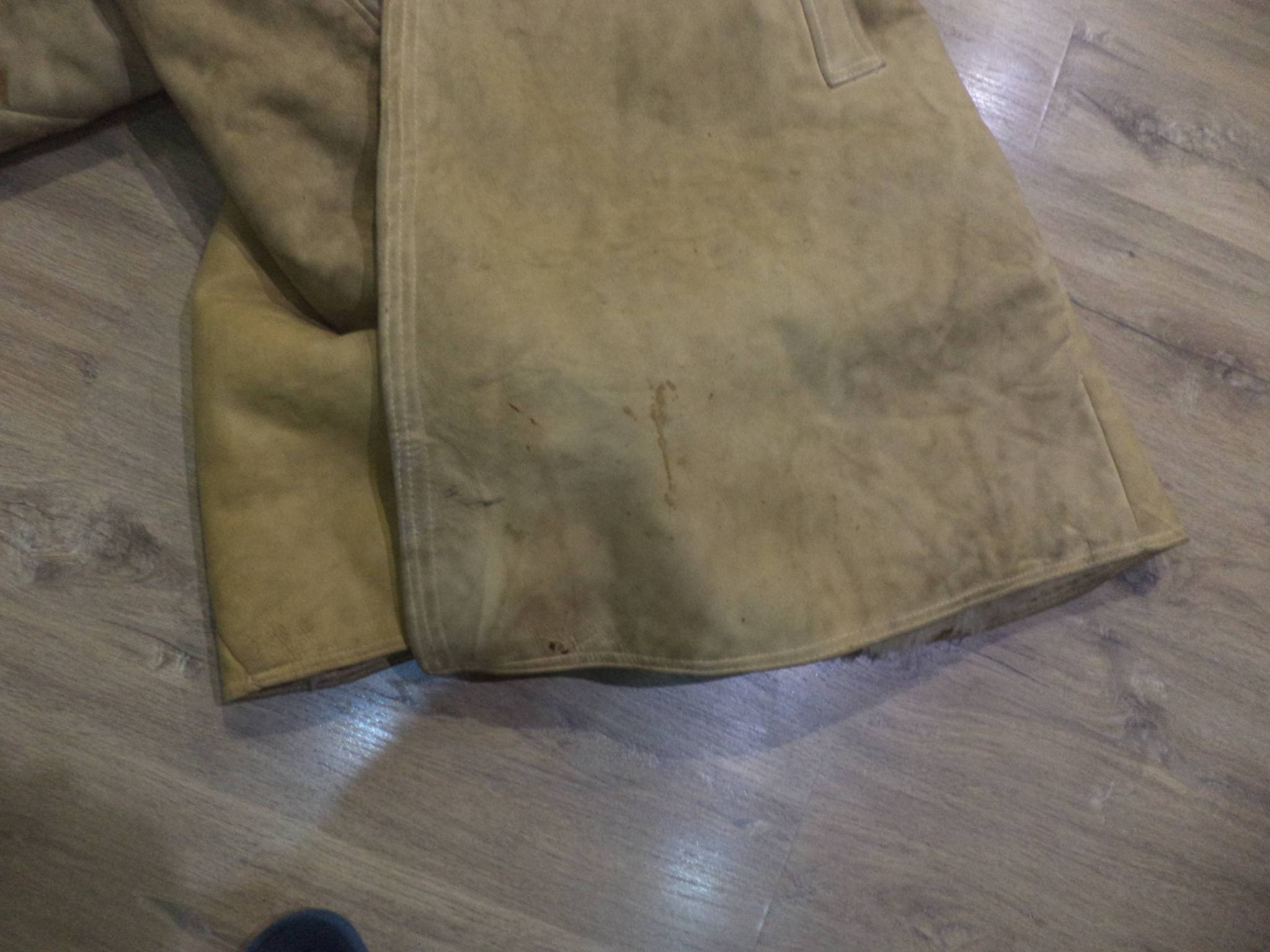 Тулуп целый, без повреждений. Но имеются загрязнения. Когда-то обсуждался подобный, было высказано мнение, что, при незначительных изменениях, может быть использован на реконструкциях по советско-финской войне.