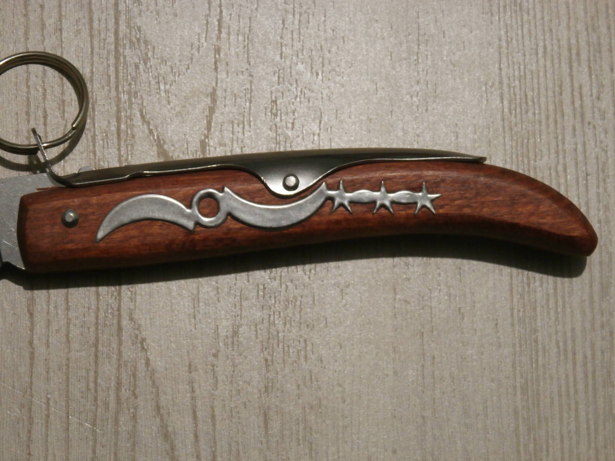 Клинок ножа изготавливается из высокоуглеродистой стали 1055, закаленной до твердости 56 единиц, что позволяет ему неплохо держать заточку и одновременно легко точиться и правиться без применения специальных инструментов. Для защиты от коррозии на клинок методом анодирования наносится специальное антикоррозийное покрытие. Рукоять современных ножей выполнена из пропитанного смолой вишневого дерева, в отличие от золингеновских, которые производились из пластика. Причем новые деревянные рукояти по своим свойствам ничуть не уступают пластиковым. Замок с кольцом для открывания надежно фиксирует клинок в рабочем положении. Пружина жесткая, при открывании и закрывании нож срабатывает с выраженным характерным щелчком.
