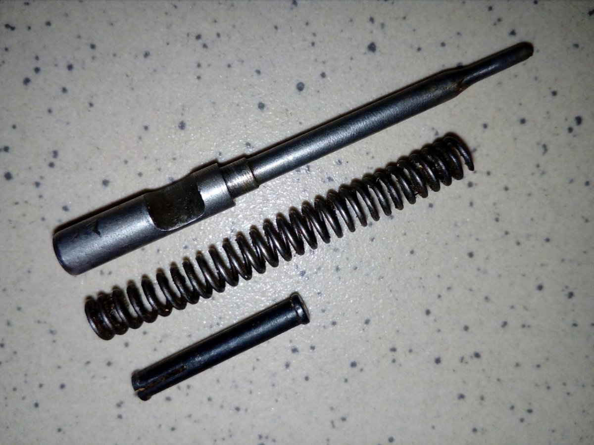 Продам оригинальный целый ударник с пружиной ударника и розрезным штифтом к ТТ. Состояние деталей отличное, не копаные, не восстановленные. На ударнике остатки клейма - звезда.