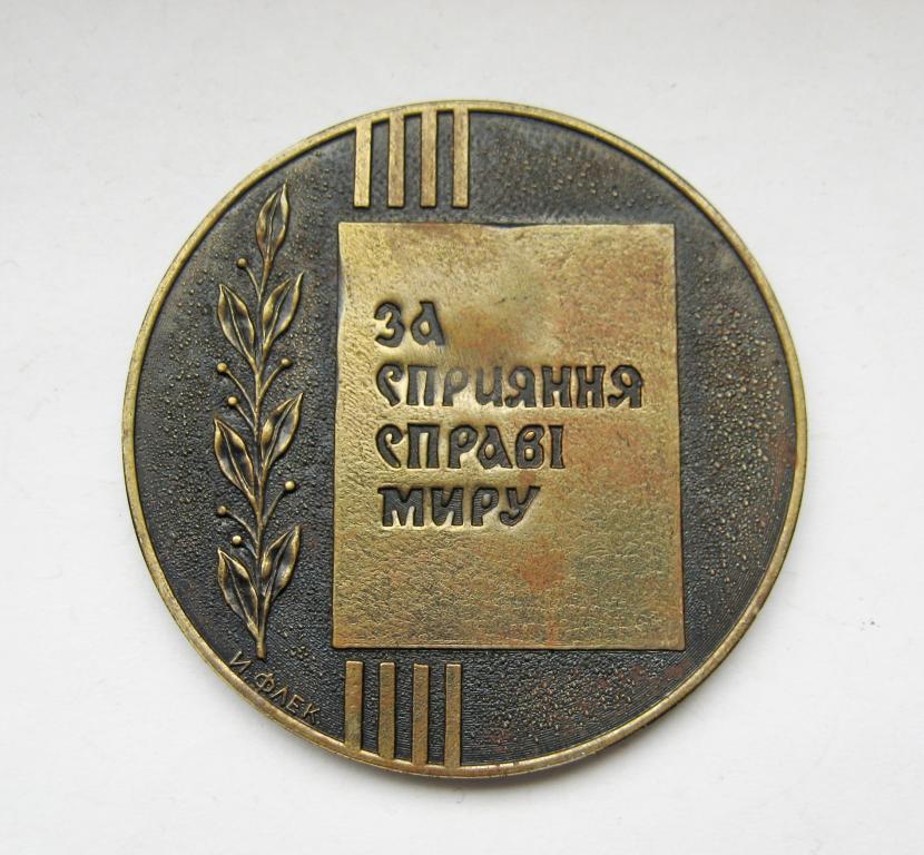 Український республіканський комітет захисту миру - За сприяння справі миру = медаль = тяж.мет