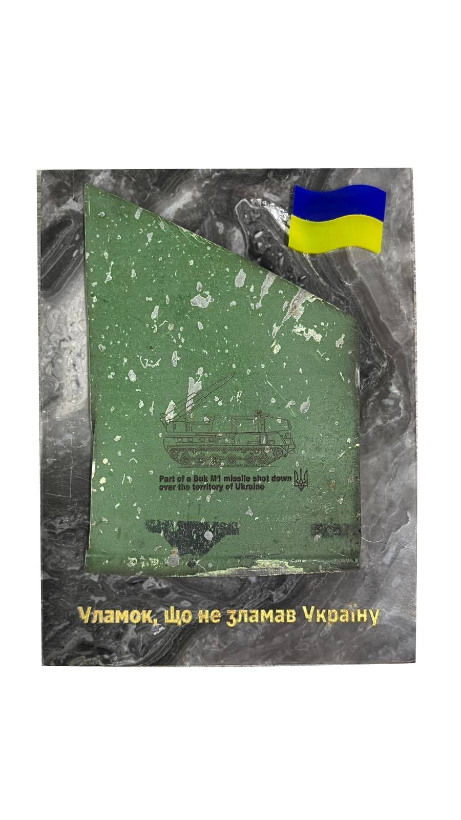 Черговий лот – уламок ракети ЗРК Бук. Зенітно-ракетний комплекс (ЗРК) Бук – одна з найвідоміших систем протиповітряної оборони. З моменту свого створення комплекс пройшов безліч модифікацій, підтвердивши свою ефективність у різних умовах бойових дій. Бук використовує кілька типів ракет, кожна з яких має свої характеристики та призначення. Основні ракети, які у цьому комплексі, – 9М38 і 9М317, кожна з яких розроблялася з певними тактичними завданнями. Ракета 9М317, крило від якої закріплене на даній експозиції, є більш сучасною модифікацією, яка була розроблена в 1990-і роки. Вона має покращені характеристики, включаючи дальність дії до 50 км і можливість ураження високошвидкісних цілей. 9М317 також має складніші системи самонаведення, що збільшує шанси на успішне знищення цілі. Ця ракета була розроблена з урахуванням нових загроз, таких як крилаті ракети та безпілотники, що робить ЗРК Бук дуже ефективним та актуальним навіть в умовах сучасної війни, дозволяючи максимально ефективно захищати повітряний простір нашої країни. Всі кошти з продажу лотів наш благодійний фонд «Україна це ти» спрямовує на допомогу пораненим Захисникам в стабілізаційні пункти м. Запоріжжя.