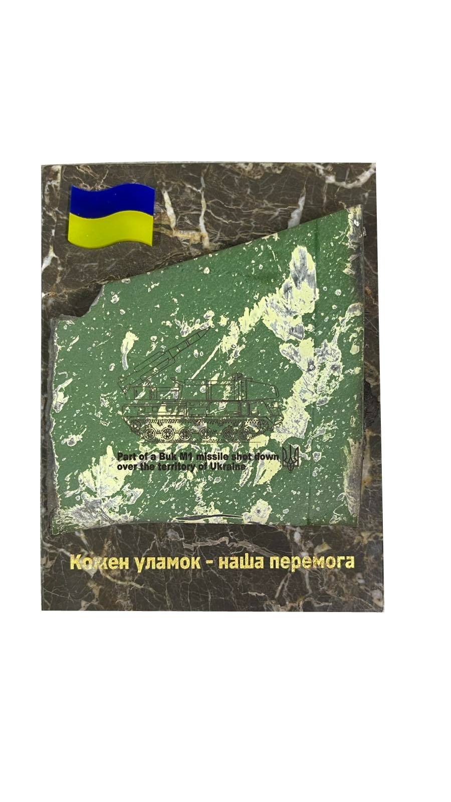 Черговий лот – уламок ракети ЗРК Бук. Зенітно-ракетний комплекс (ЗРК) Бук – одна з найвідоміших систем протиповітряної оборони. З моменту свого створення комплекс пройшов безліч модифікацій, підтвердивши свою ефективність у різних умовах бойових дій. Бук використовує кілька типів ракет, кожна з яких має свої характеристики та призначення. Основні ракети, які у цьому комплексі, – 9М38 і 9М317, кожна з яких розроблялася з певними тактичними завданнями. Ракета 9М317, крило від якої закріплене на даній експозиції, є більш сучасною модифікацією, яка була розроблена в 1990-і роки. Вона має покращені характеристики, включаючи дальність дії до 50 км і можливість ураження високошвидкісних цілей. 9М317 також має складніші системи самонаведення, що збільшує шанси на успішне знищення цілі. Ця ракета була розроблена з урахуванням нових загроз, таких як крилаті ракети та безпілотники, що робить ЗРК Бук дуже ефективним та актуальним навіть в умовах сучасної війни, дозволяючи максимально ефективно захищати повітряний простір нашої країни. Всі кошти з продажу лотів наш благодійний фонд «Україна це ти» спрямовує на допомогу пораненим Захисникам в стабілізаційні пункти м. Запоріжжя.