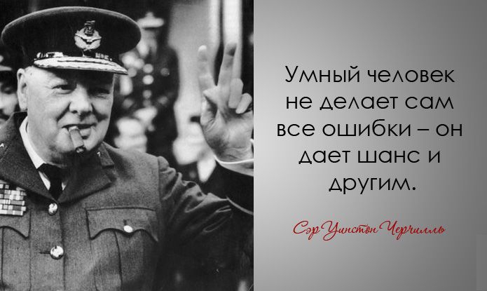 Умный человек не делает сам все ошибки.. Уинстон Черчилль.