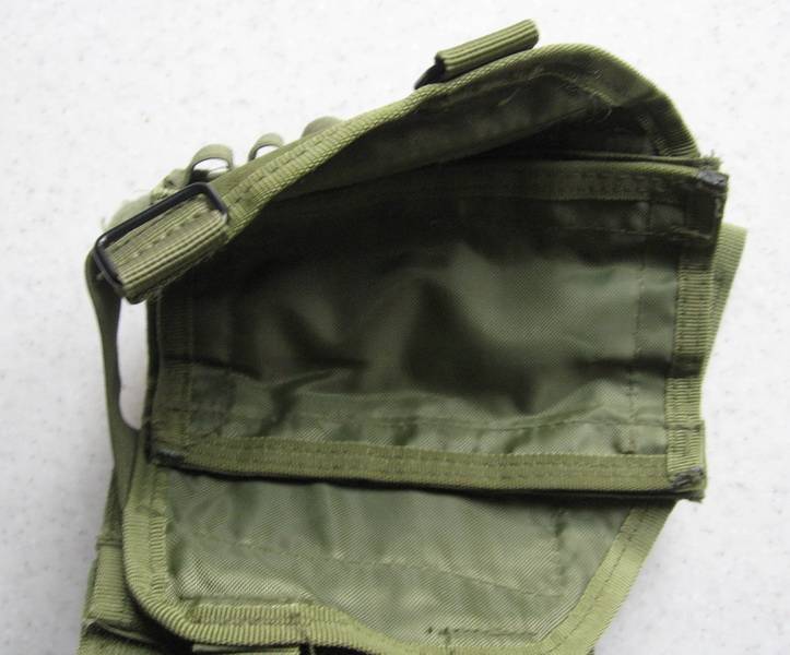 Имеет 2 велкропанели, вкладыш для винтовочных патронов на 7 штук (диаметр универсальный за счёт растягиваемой ткани) и может закрываться в чехол для вкладыша что-бы избежать попаданию грязи на патроны; или чехол можно отдельно использовать с другой стороны приклада для удобства (как на фото).