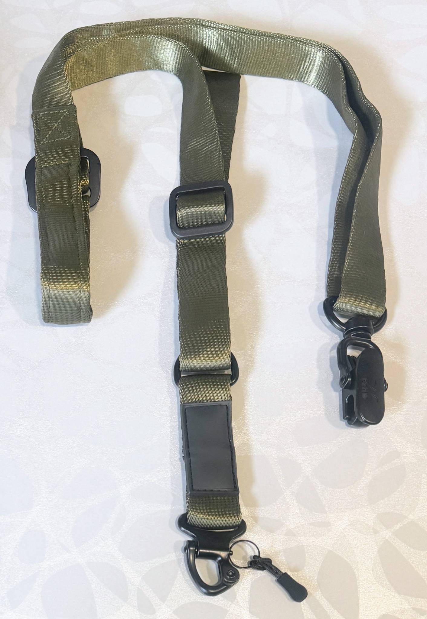 Після простих маніпуляцій з карабінами, які займають до двох хвилин, ремінь можна перевести в режим з одноточкового до двоточкового і навпаки, що суттєво розширює можливості його використання.
