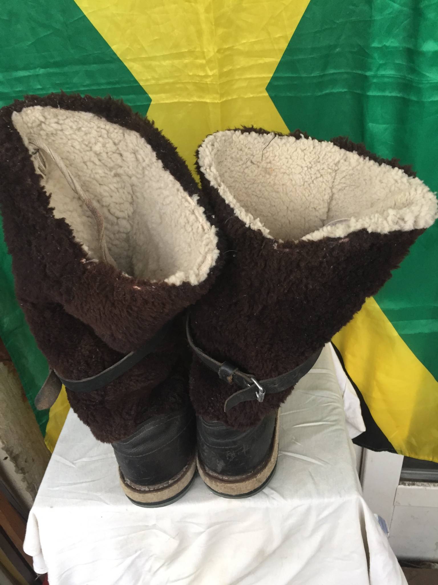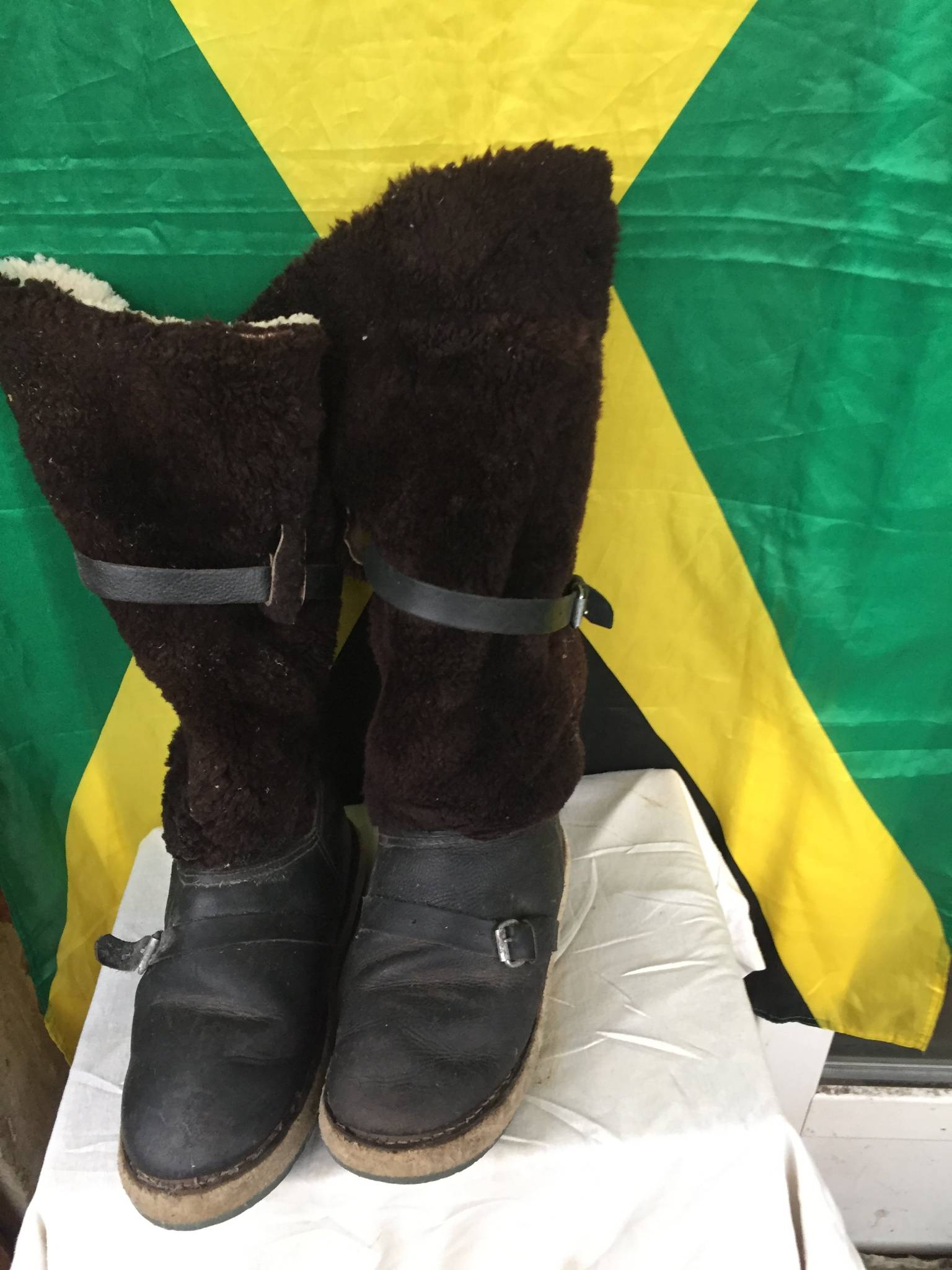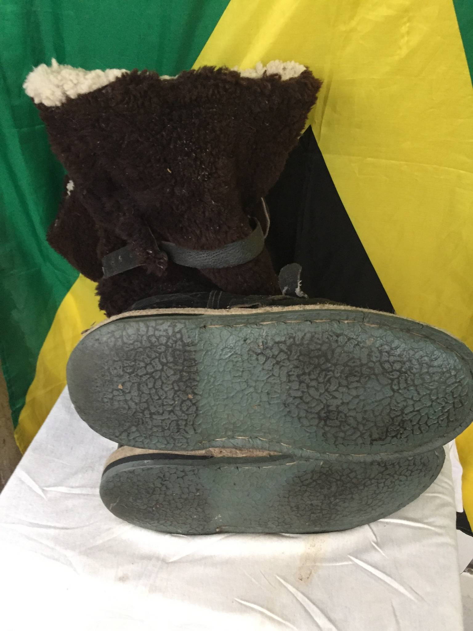 Унты, только не из меха собаки, а из овчины. Состояние практически новое. Практически не пользованы. На 43 – 44 размер. Есть небольшой износ на задней части подошвы(см. фото). Стоимость 2600 грн./пара.