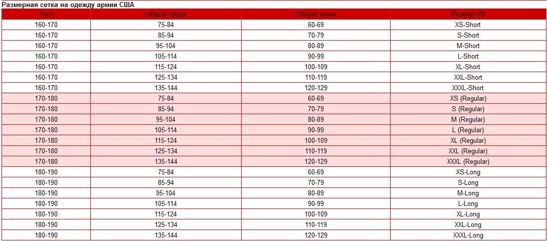 на зріст - 170-180, обхват торсу - 105-114, обхват талії - 90-99