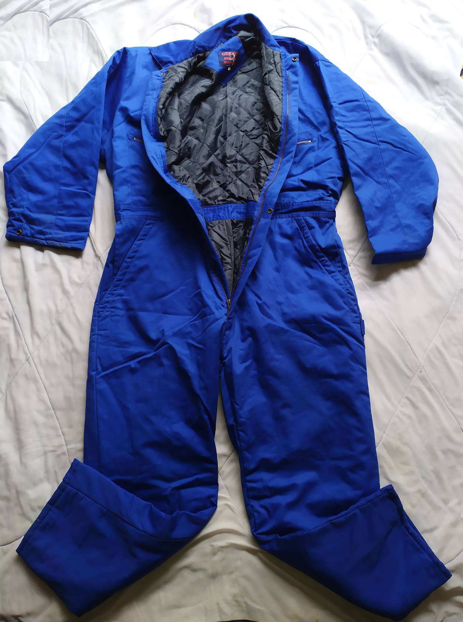 Размер по бирке – 50. Но, судя по замерам, можно и на 52р. Зависит от количества одежды под комбезом и проверяйте по замерам. Замеры : плечи - 63 см, рукав внешний/внутренний шов - 60/51 см, полуобхват груди - 73 см, внутренний шов штанины - 80 см, длина от шва воротника до шва в паху - 100 см. Полуобхват в поясе 60 см и ещё тянется за счёт вшитих резинок примерно на +5 см с каждой стороны.