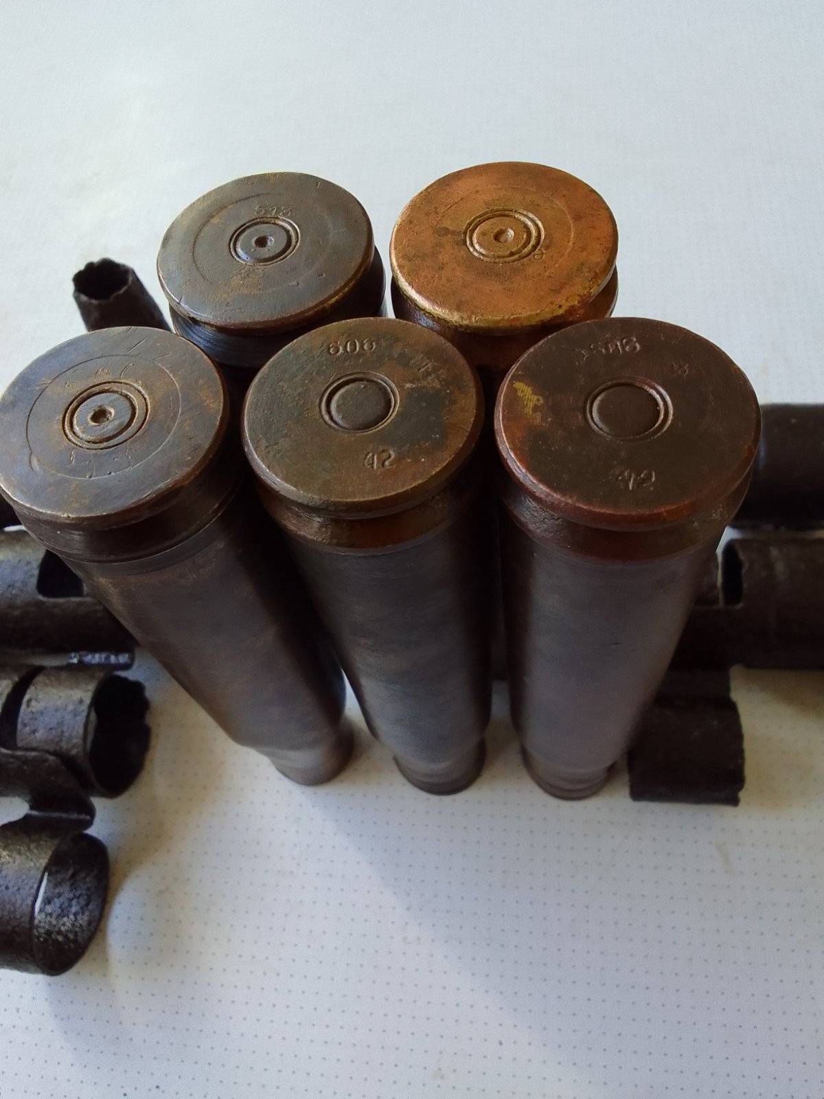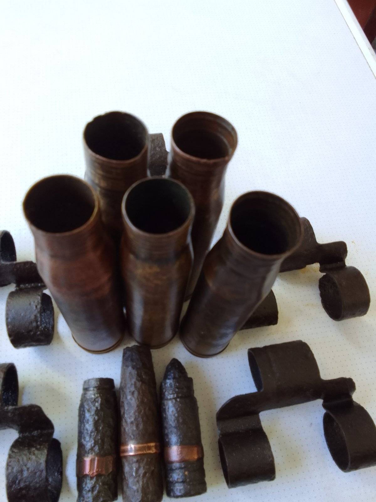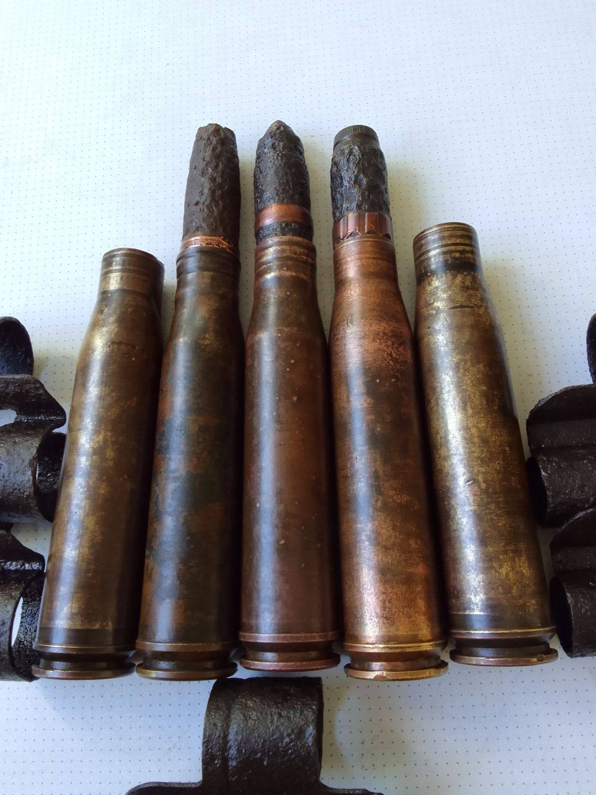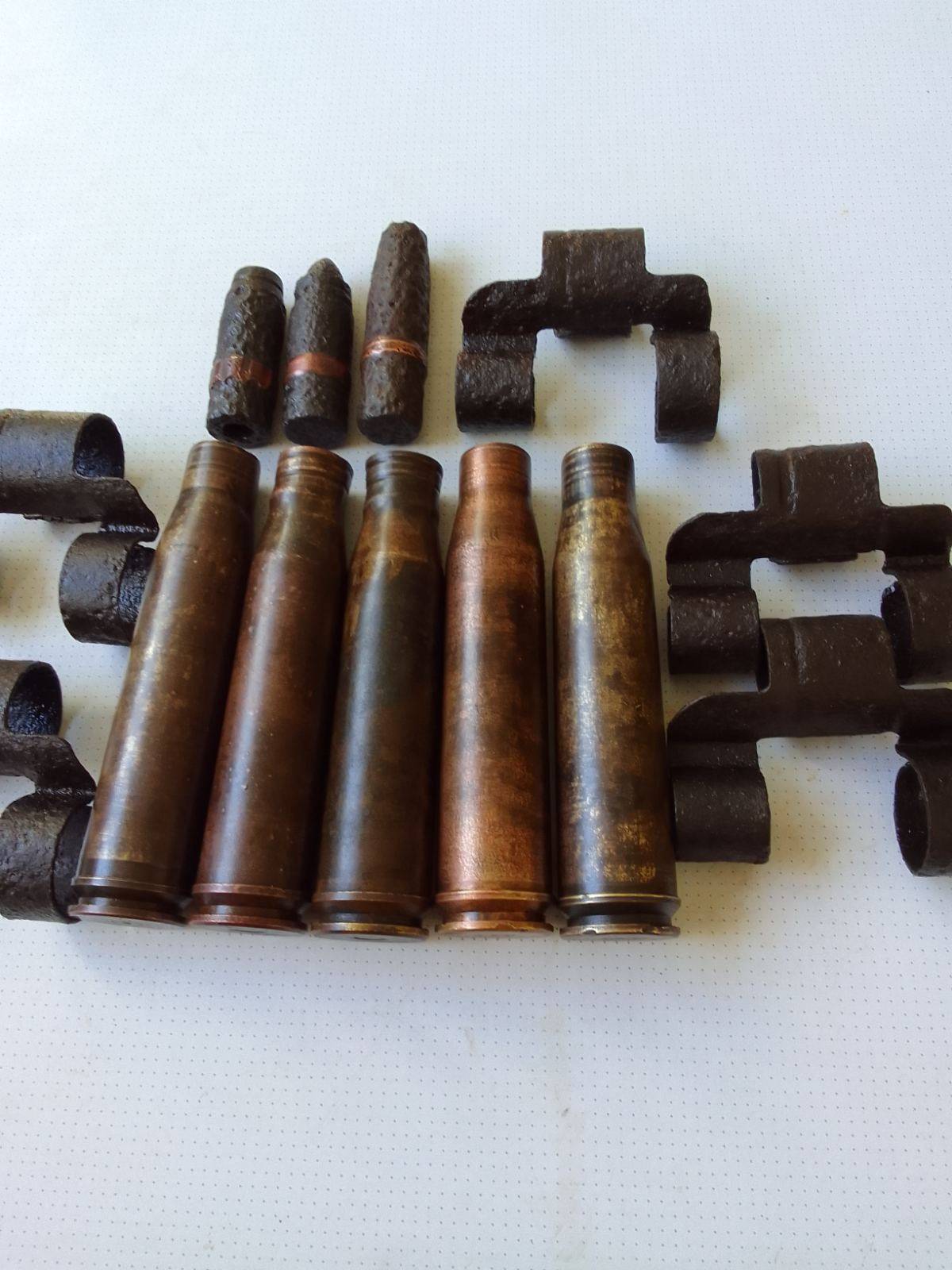 Лесной коп . Немного почищено - слегка протерто маслом . В лоте есть 5 латунных гильз , 5 звеньев и 3 пули - снаряда от советской авиационной тяжелой 23 мм пушки Волкова и Ярцева . Изготовлены на заводах № 606 и № 513 в 1942 и 43 годах Гильзы весом = 214 , 214 , 211 , 208 и 202 грамма . Пули весом = 185 , 170 и 142 грамма . Лично сам хорошо упаковываю все свои лоты ! Лоты комбинирую и разбиваю ! Отправлю Новой почтой в тот же день !