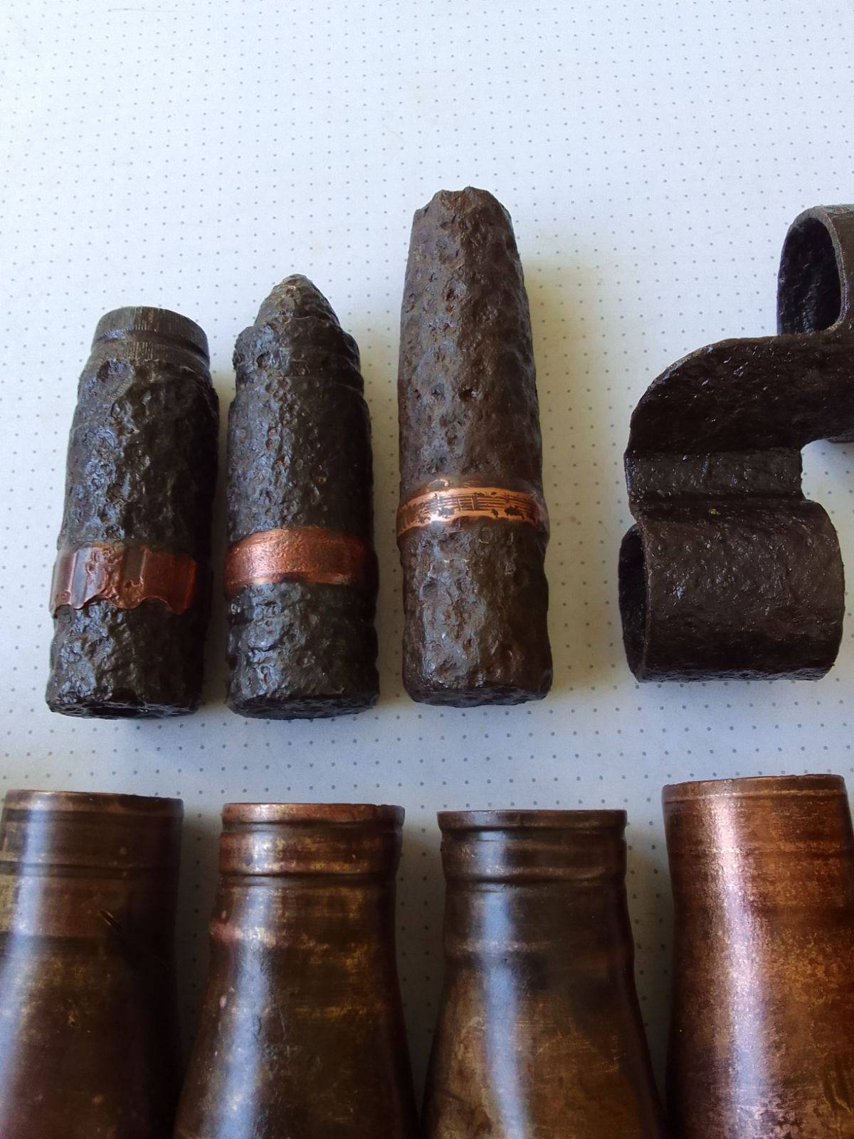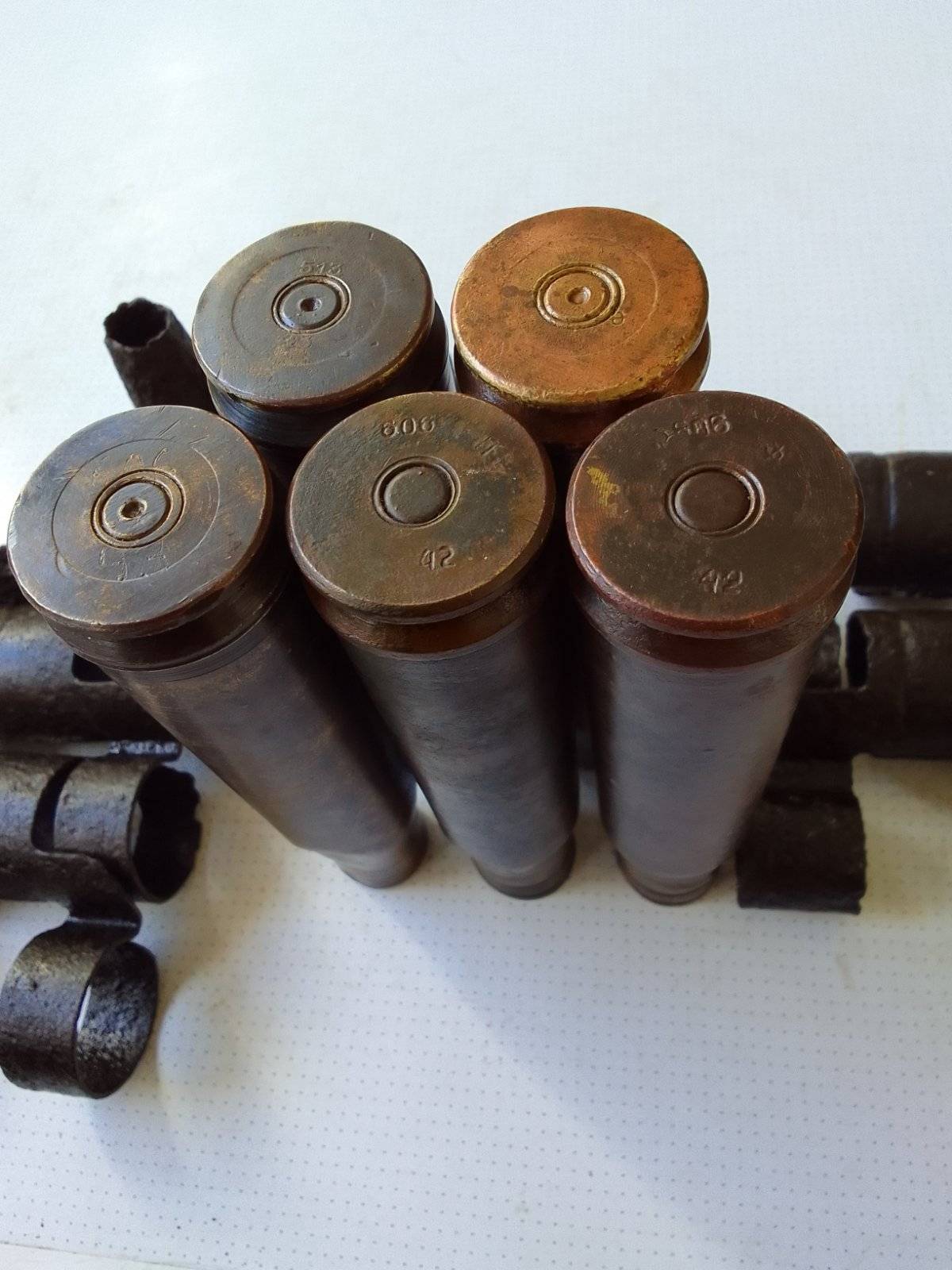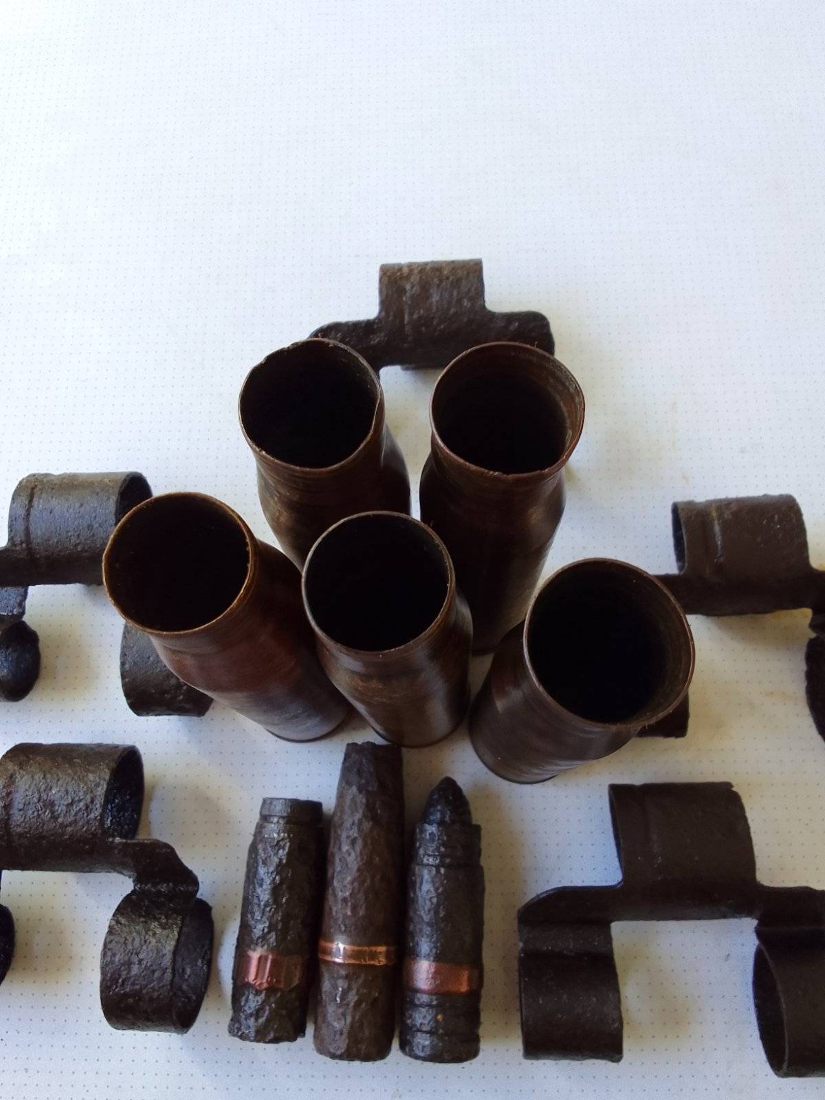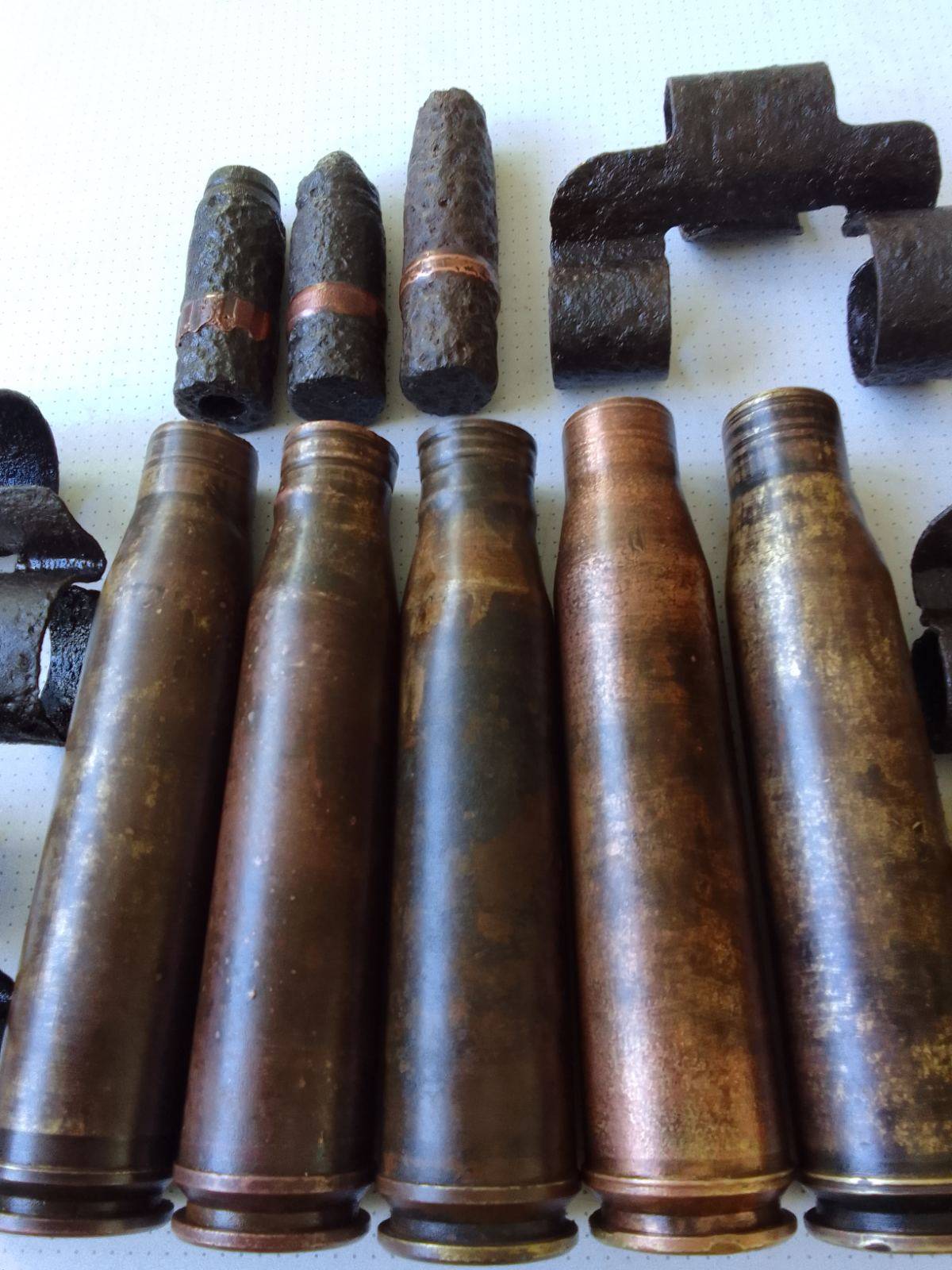Лесной коп . Немного почищено - слегка протерто маслом . В лоте есть 5 латунных гильз , 5 звеньев и 3 пули - снаряда от советской авиационной тяжелой 23 мм пушки Волкова и Ярцева . Изготовлены на заводах № 606 и № 513 в 1942 и 43 годах Гильзы весом = 214 , 214 , 211 , 208 и 202 грамма . Пули весом = 185 , 170 и 142 грамма . Лично сам хорошо упаковываю все свои лоты ! Лоты комбинирую и разбиваю ! Отправлю Новой почтой в тот же день !